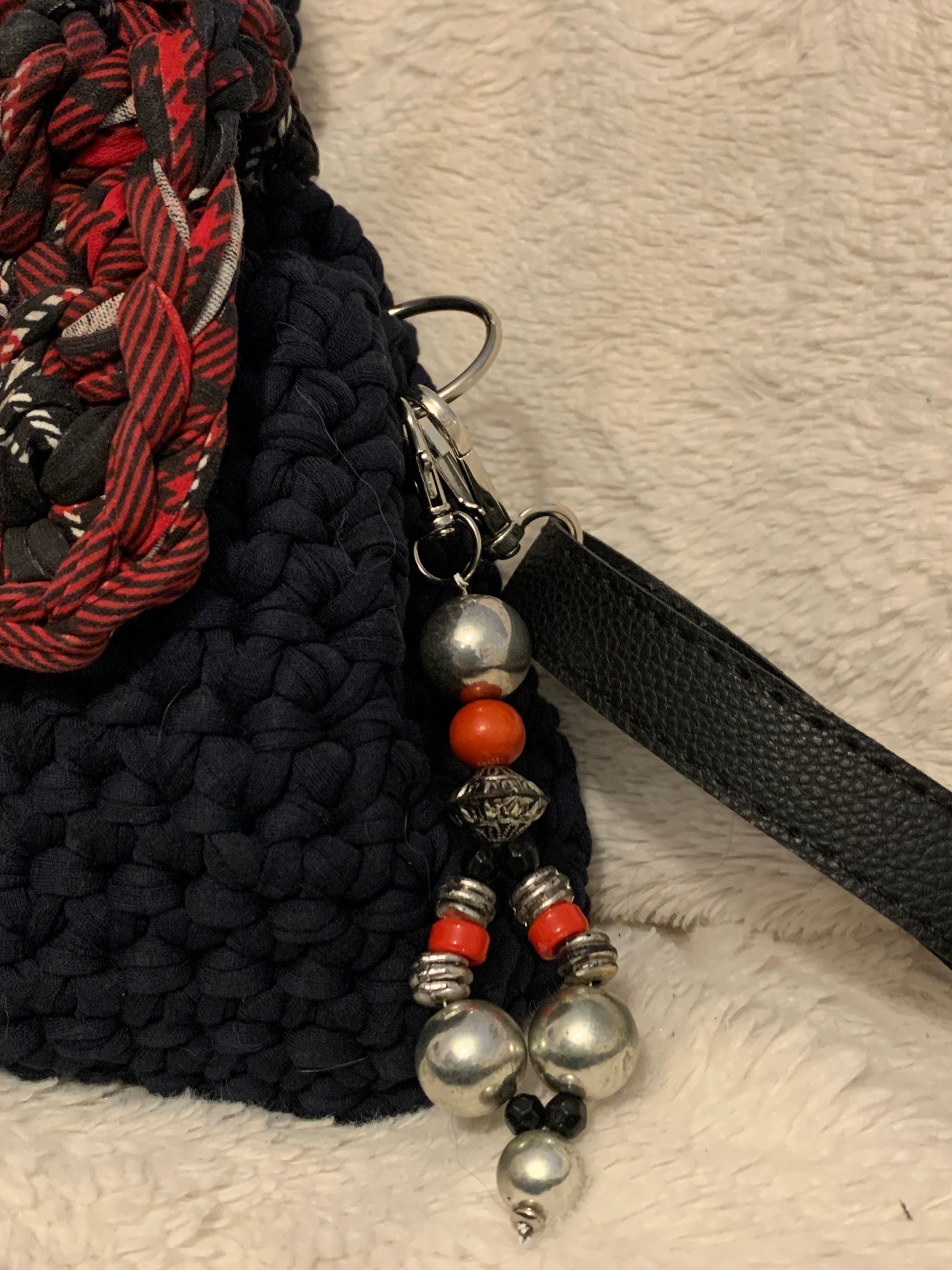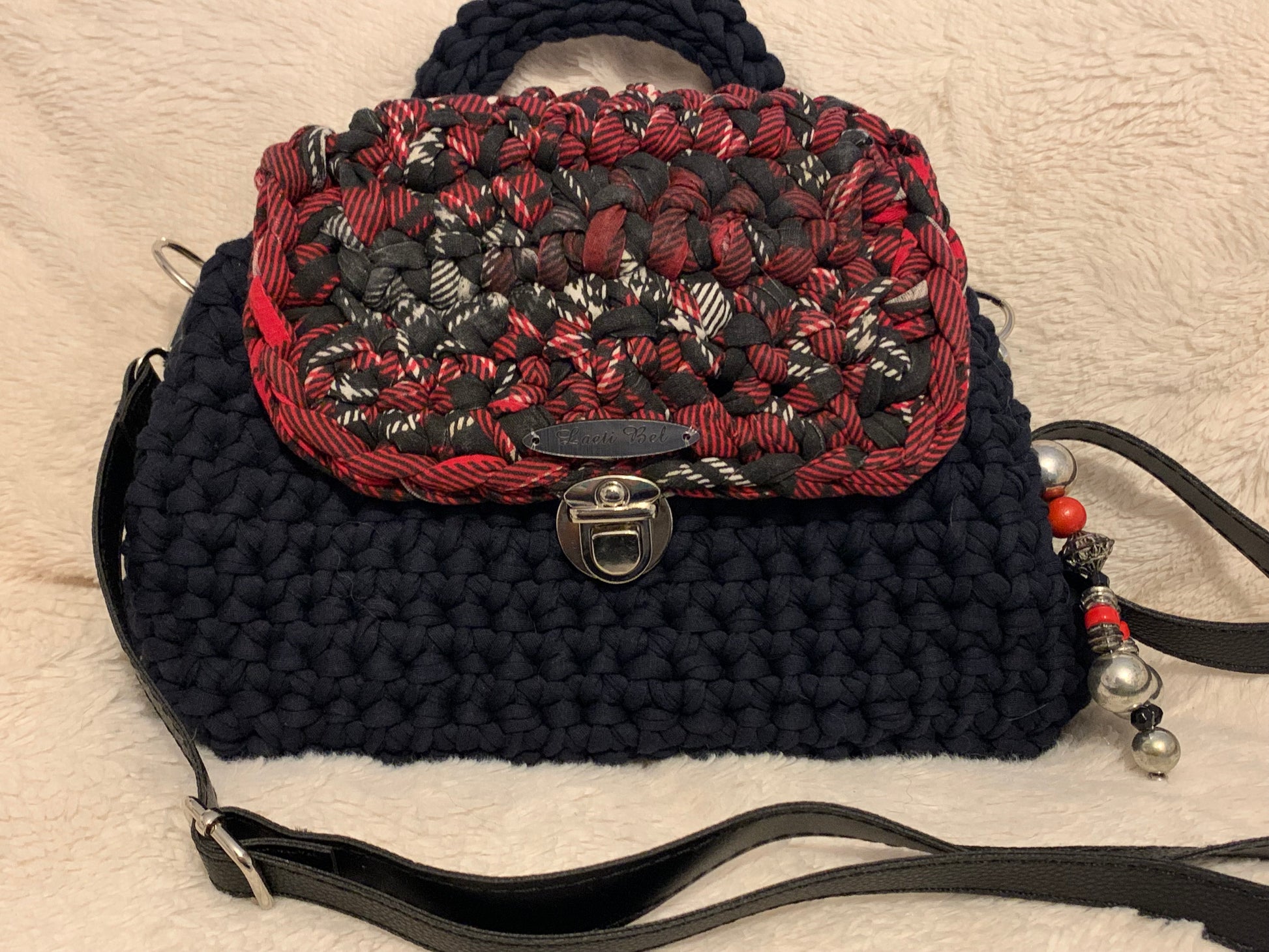 Découvrez l'élégance artisanale avec ce magnifique sac à main Alba. Conçu avec soin à partir de fils épais dans des tons rouges et noirs, ce sac offre un look unique et sophistiqué. Le rabat supérieur en maille épaisse noire contraste élégamment avec le corps rouge à motifs, ajoutant une touche de style audacieux.