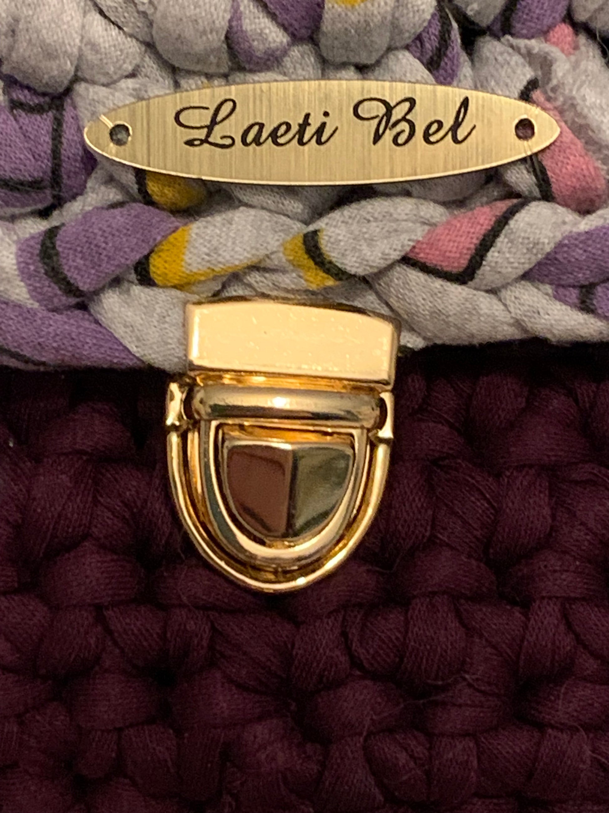 Couleurs : Rabat violet prune, base multicolore (gris, lilas, jaune).