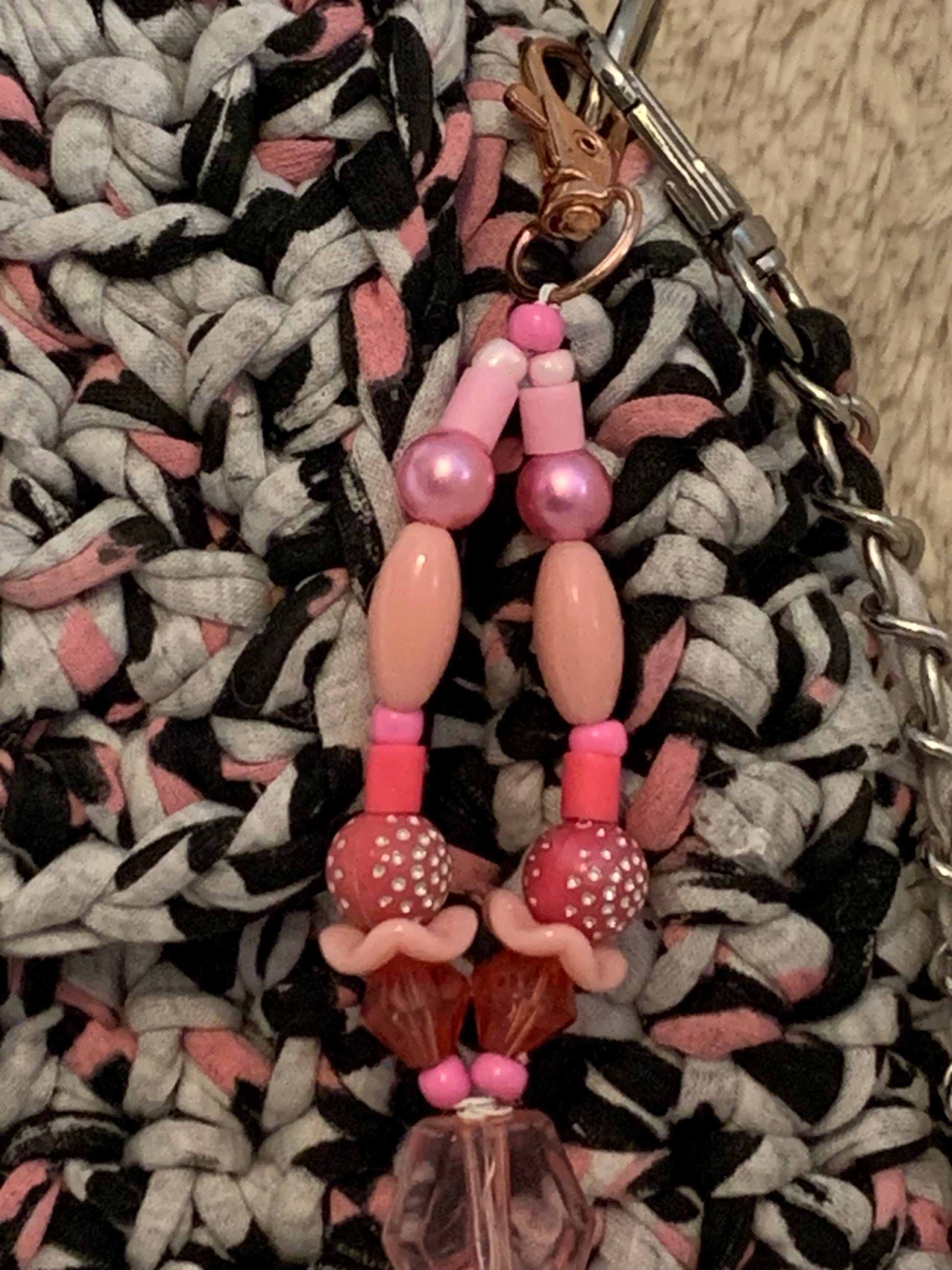 Détails : Breloque décorative en perles roses.