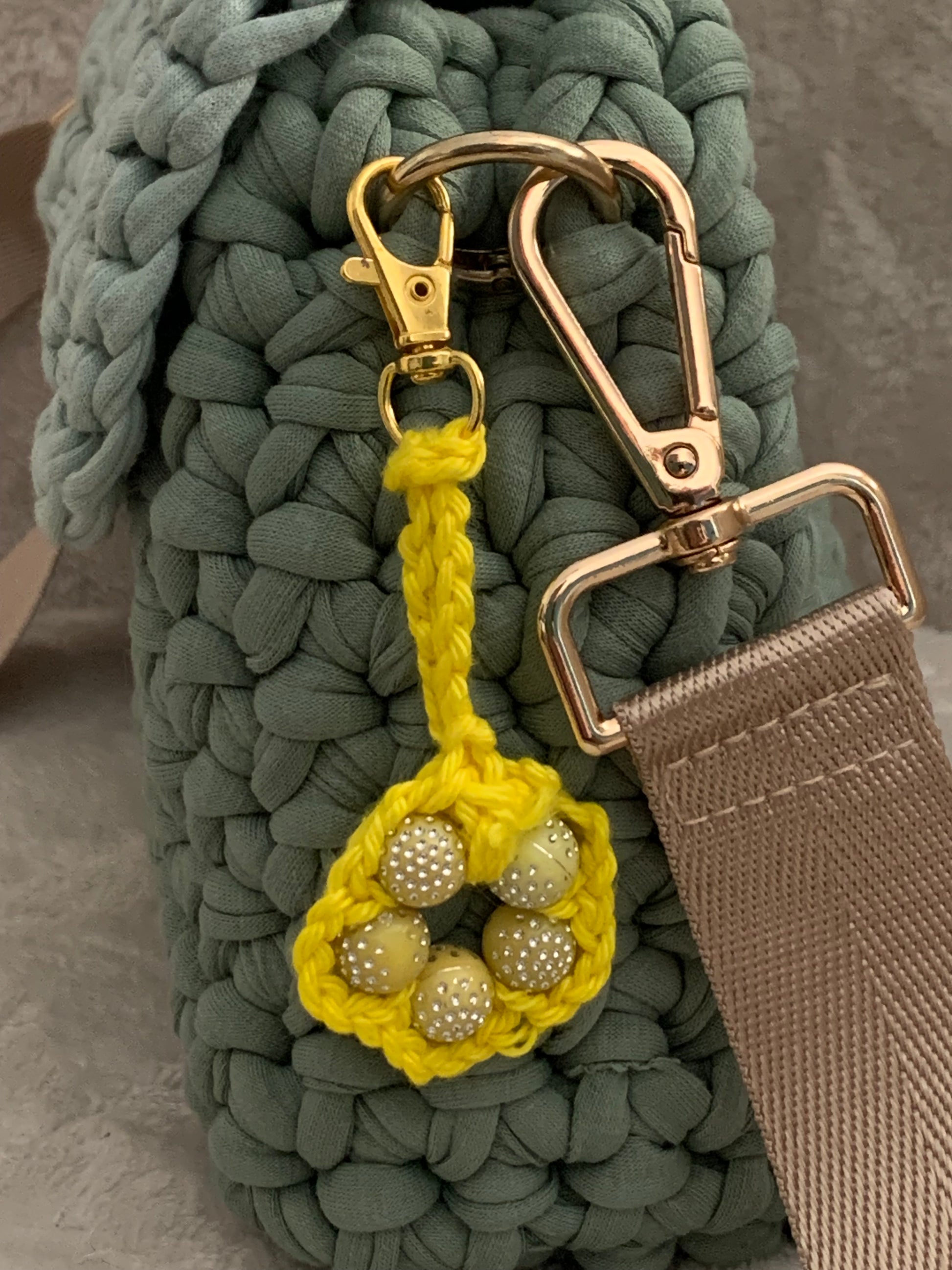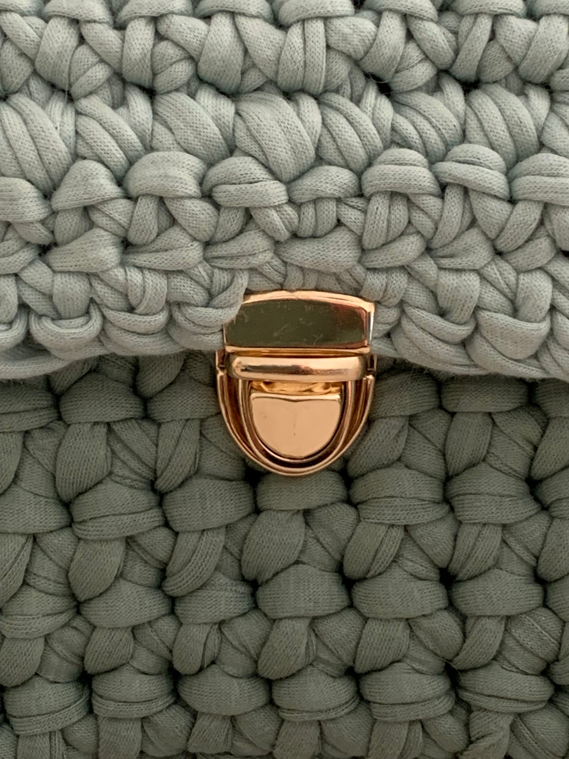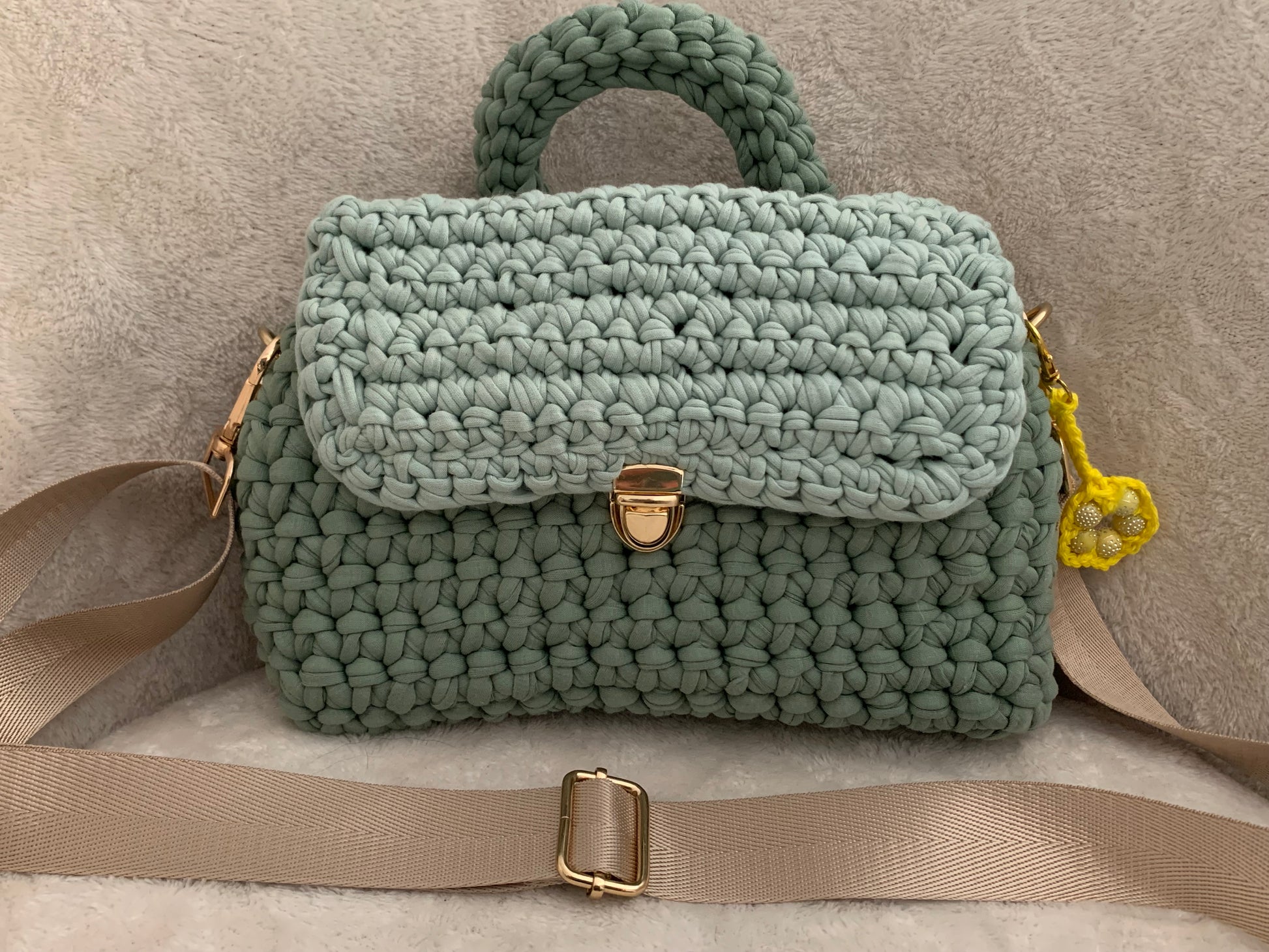 Le sac Alba en vert sauge est une pièce raffinée qui allie praticité et style. Son design en crochet artisanal, son anse structurée et sa bandoulière réglable en font un modèle confortable et polyvalent. Le fermoir doré apporte une touche chic, tandis que le petit pendentif jaune ajoute une note de fraîcheur et d’originalité.