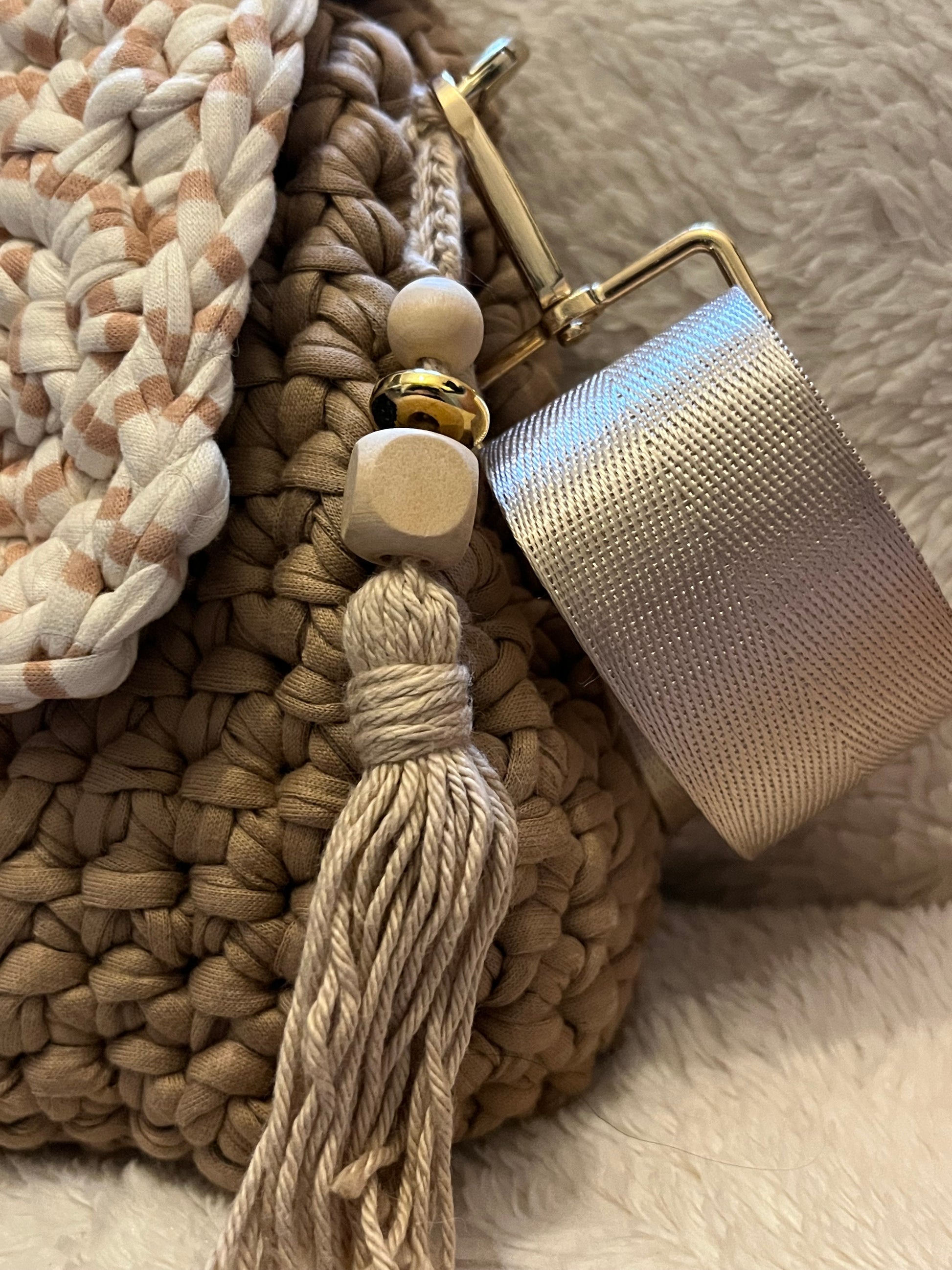 Découvrez l’élégance naturelle avec ce sac à main Alba, confectionné à la main en crochet artisanal dans des tons beige et sable. Son design raffiné joue sur le contraste du rabat clair et du corps plus soutenu, créant un style à la fois chic et intemporel. Le pompon décoratif apporte une touche bohème moderne, tandis que la bandoulière réglable et solide garantit confort et praticité au quotidien.