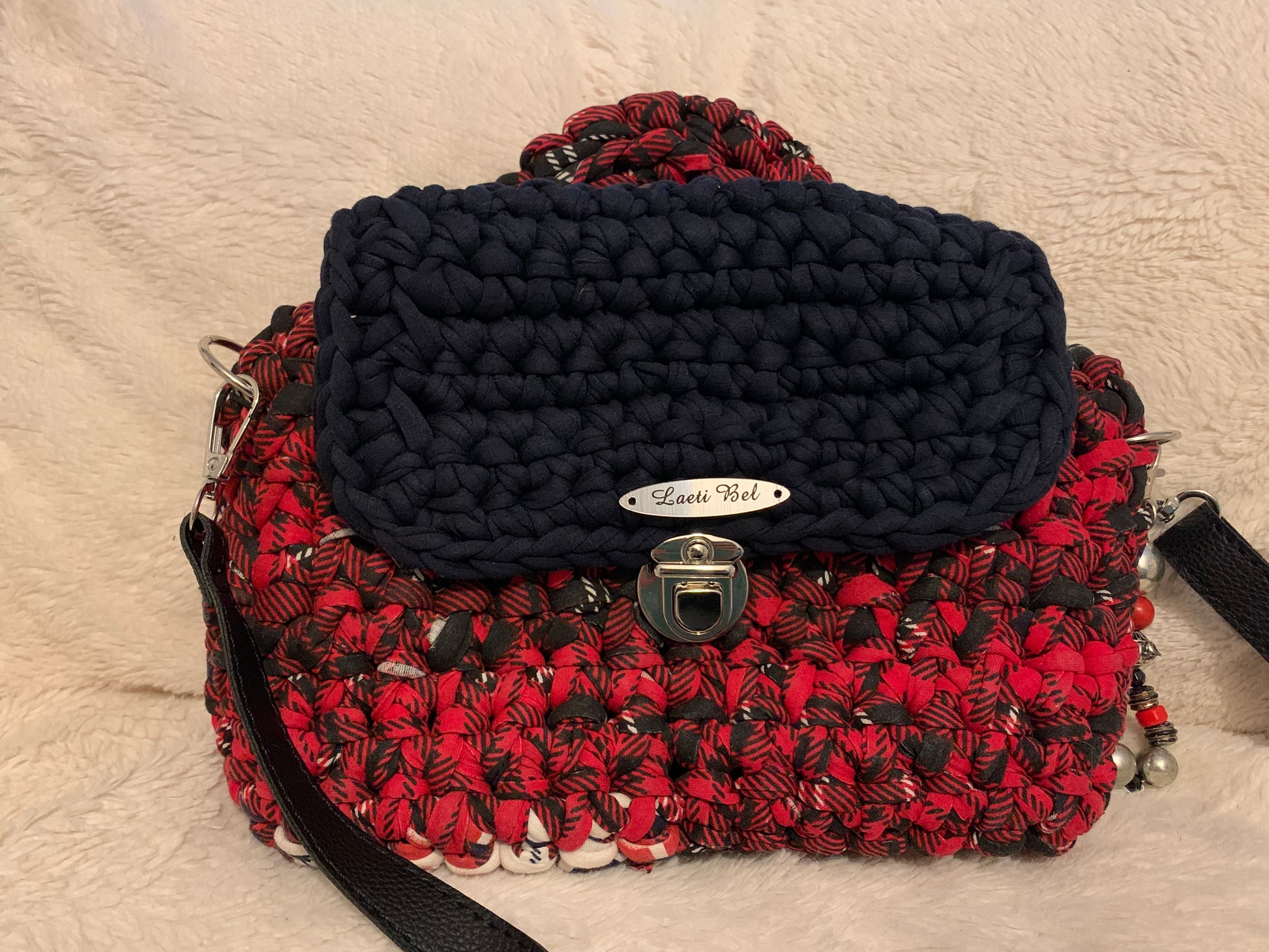 Le sac Alba est une création artisanale en crochet qui séduit par son audace et son élégance. Son corps rouge profond aux détails noirs offre un contraste raffiné, relevé par un rabat en crochet noir uni pour une touche de sobriété. Sa bandoulière en cuir noir apporte confort et modernité, tandis que sa fermeture argentée assure un usage pratique et sécurisé.