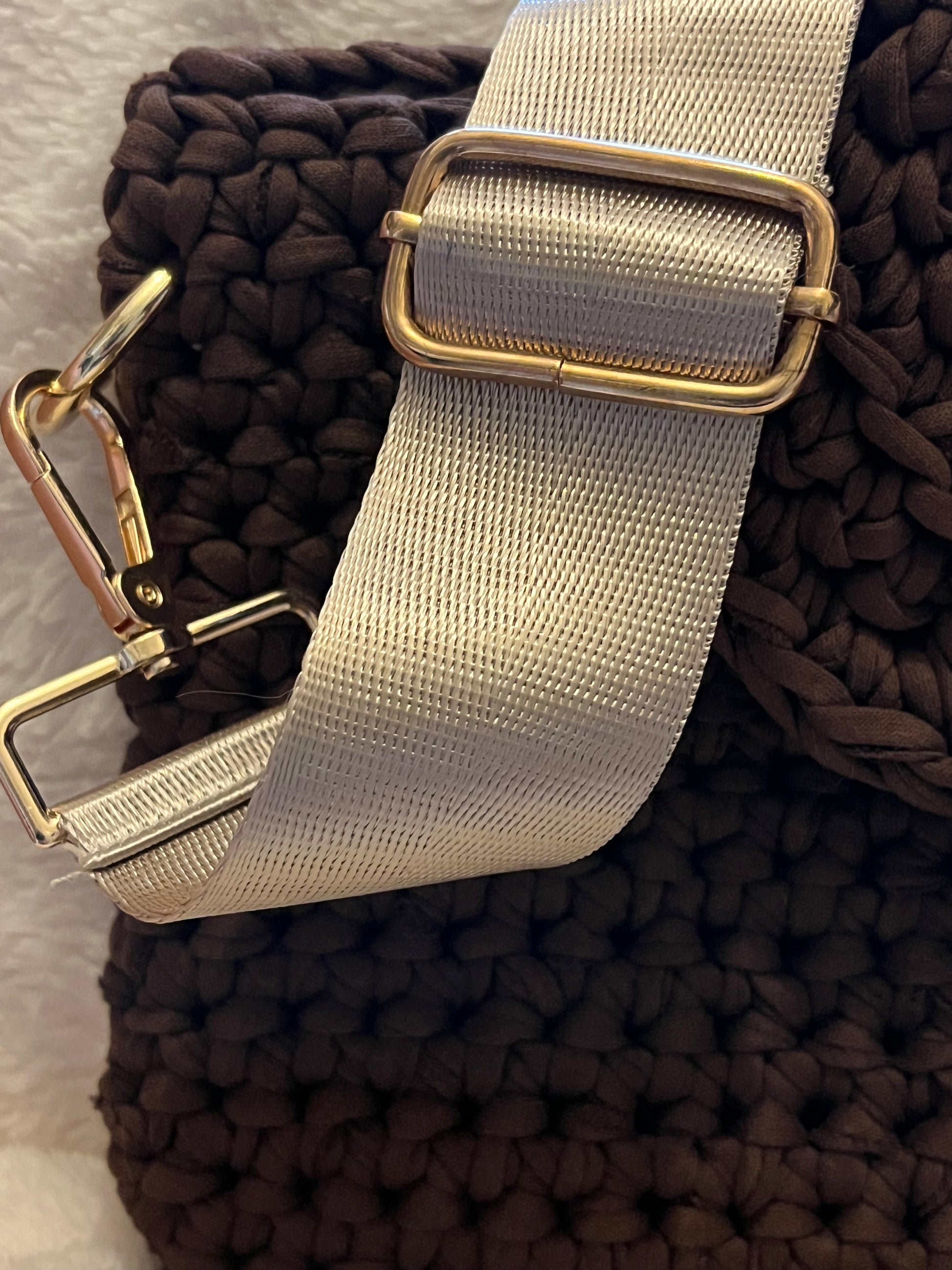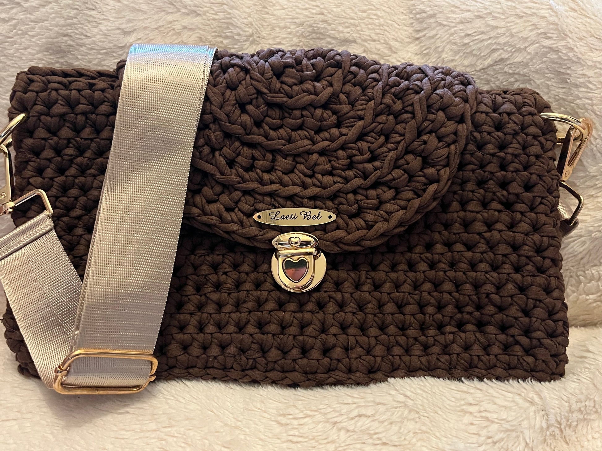 Alliant modernité et artisanat, le sac Alice se distingue par son coloris chocolat profond sublimé d’une anse large beige à détails dorés. Son rabat travaillé au crochet et sa fermeture dorée lui confèrent une allure élégante et intemporelle. Une pièce parfaite pour sublimer vos looks quotidiens comme vos soirées.