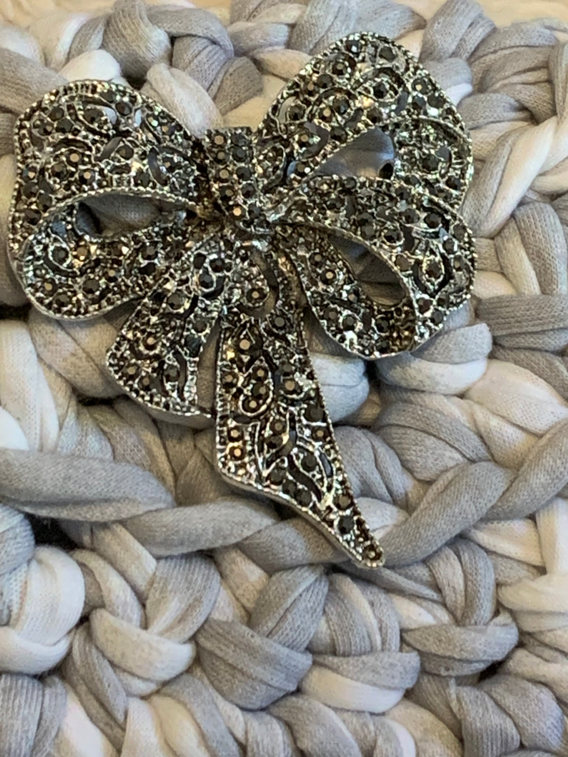Détail : Nœud argenté scintillant sur le rabat.
