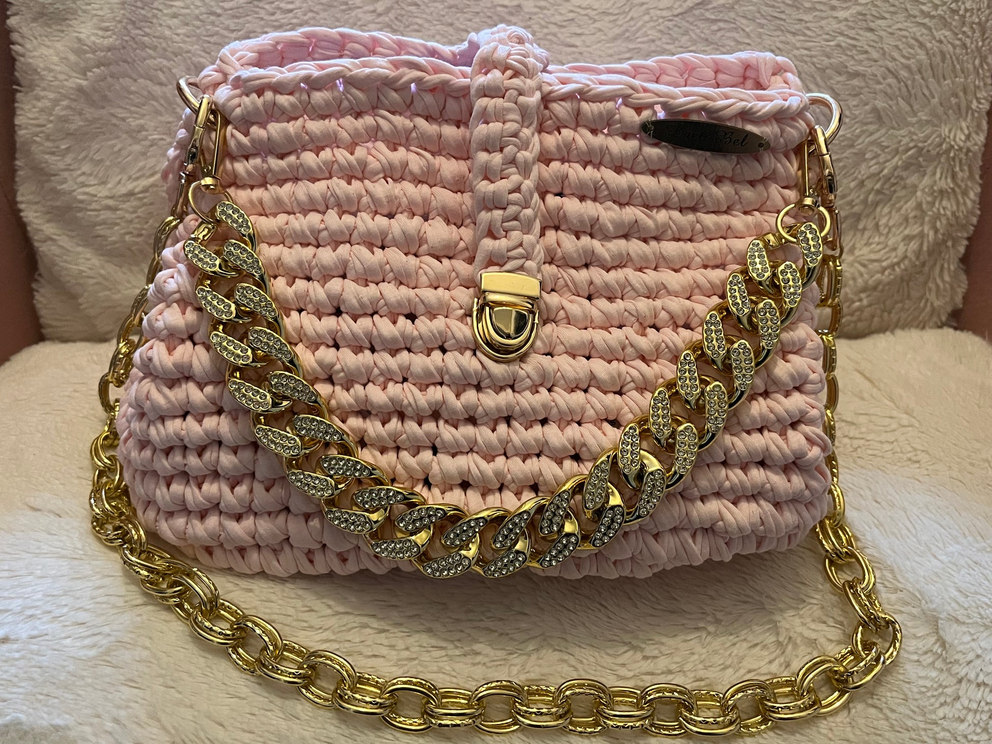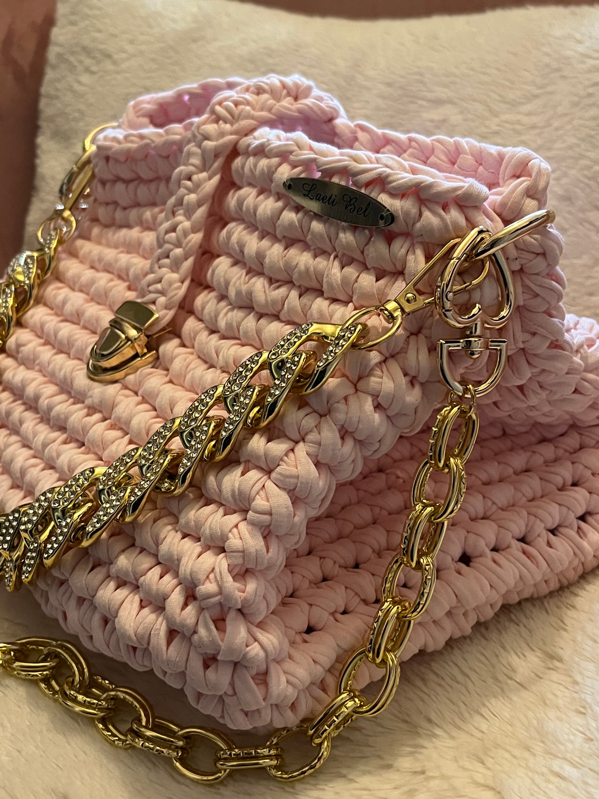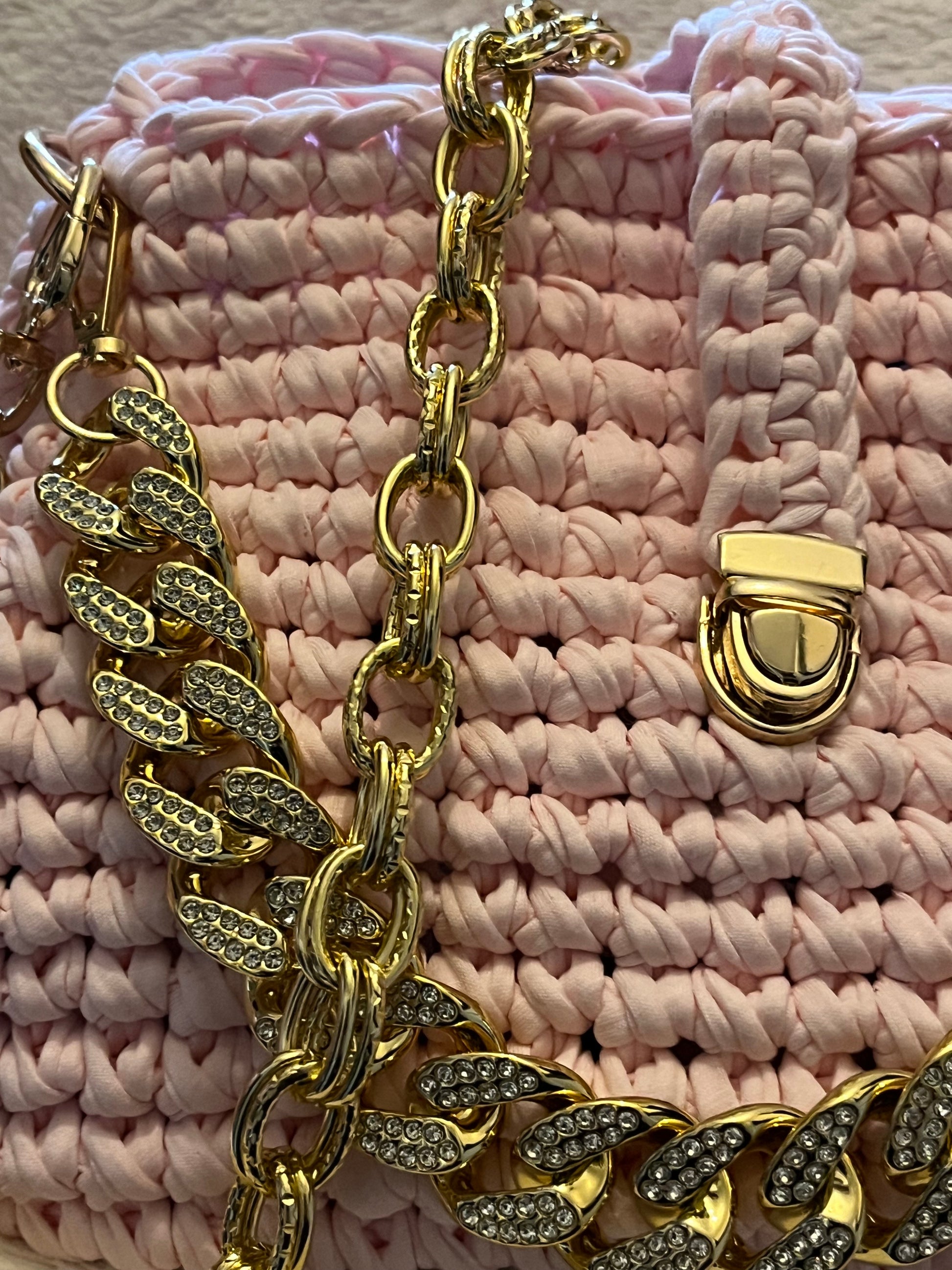 Succombez au charme délicat du sac à main Clara, une pièce artisanale qui allie douceur et raffinement. Sa teinte rose poudré féminine, sublimée par une chaîne dorée éclatante, en fait l’accessoire idéal pour apporter élégance et modernité à vos tenues.