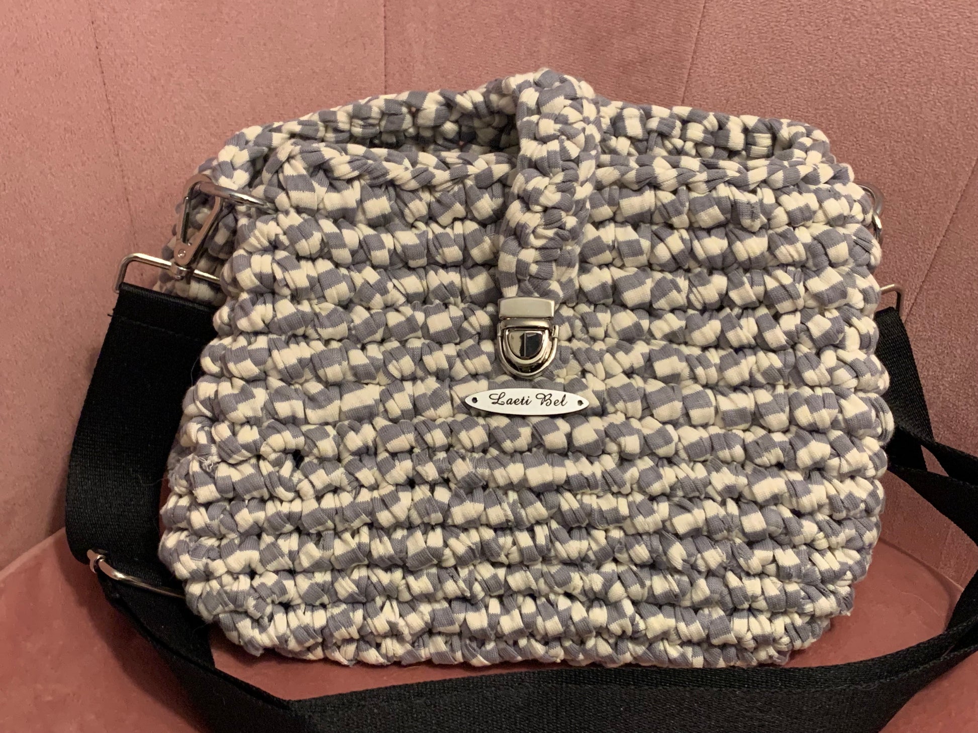 Le modèle Clara se décline dans une version sobre et raffinée. Son crochet artisanal mélange des fils gris et blancs pour créer un effet texturé élégant et intemporel. La fermeture métallique argentée lui apporte une touche moderne et solide, tandis que la bandoulière noire réglable assure confort et praticité.