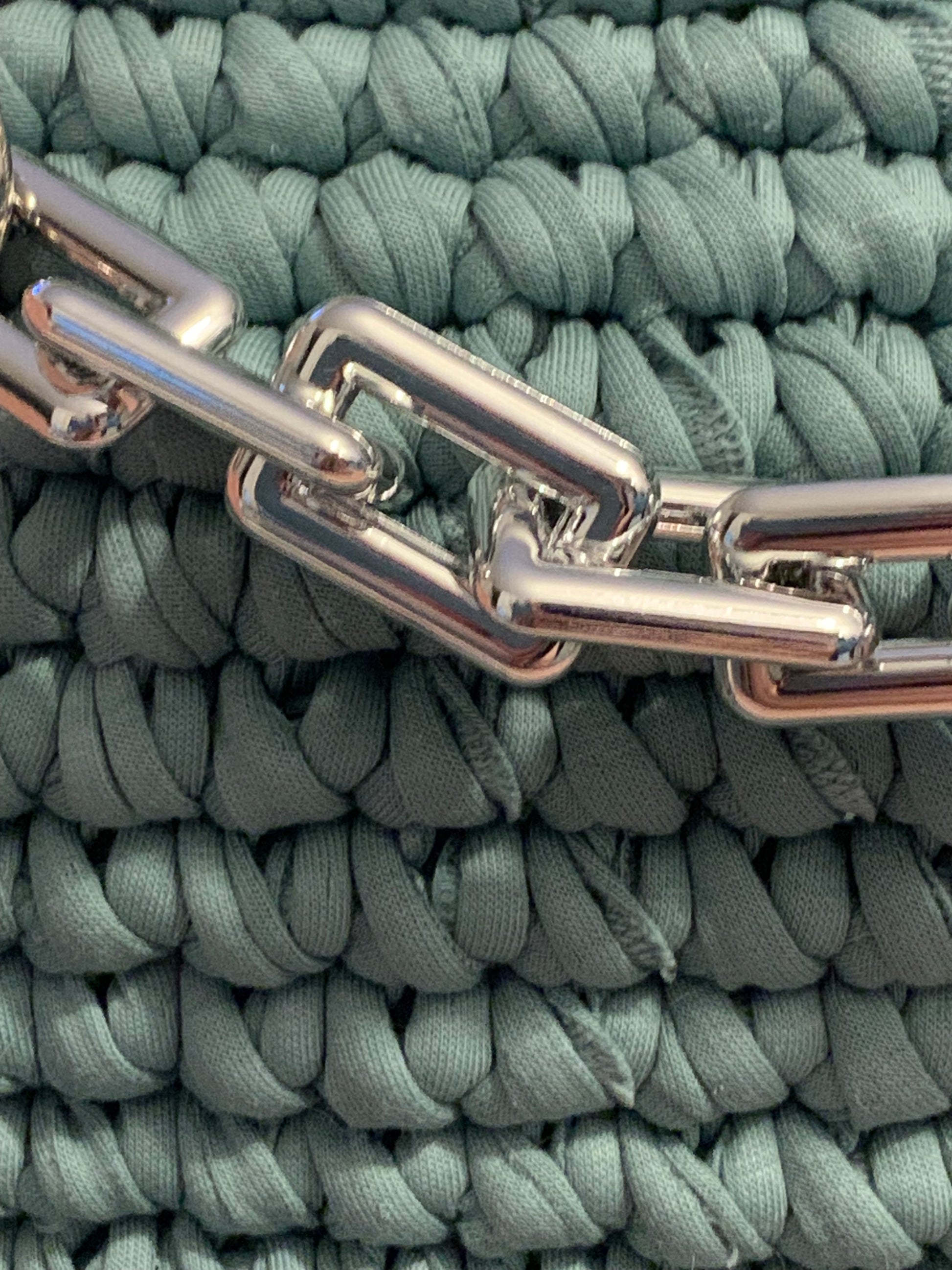 Le Clara vert sauge est un sac en crochet artisanal qui respire la fraîcheur et la féminité. Sa base en fil lui donne un charme chic.