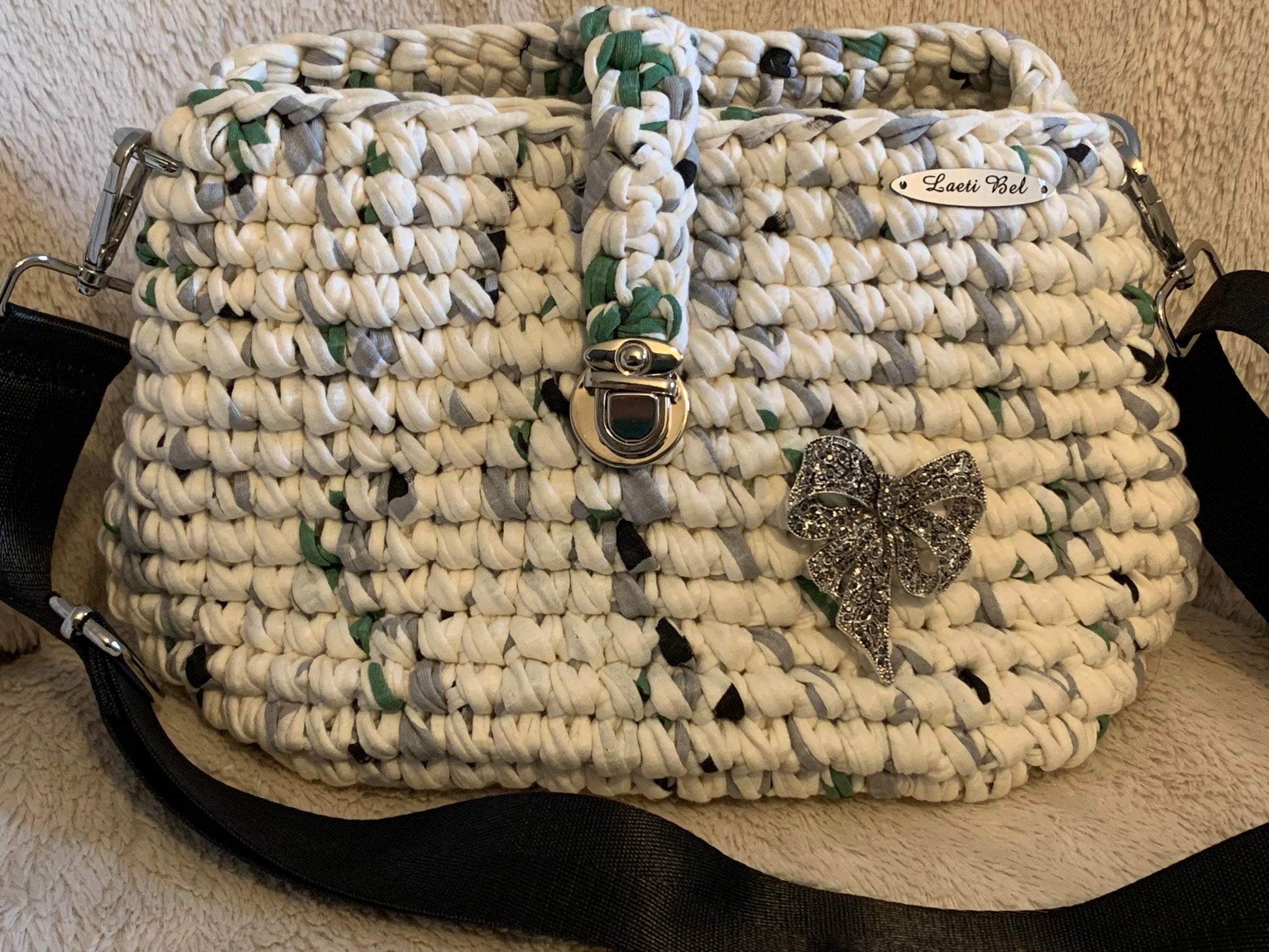 Sac Clara – écru, gris et vert texturé avec nœud argenté