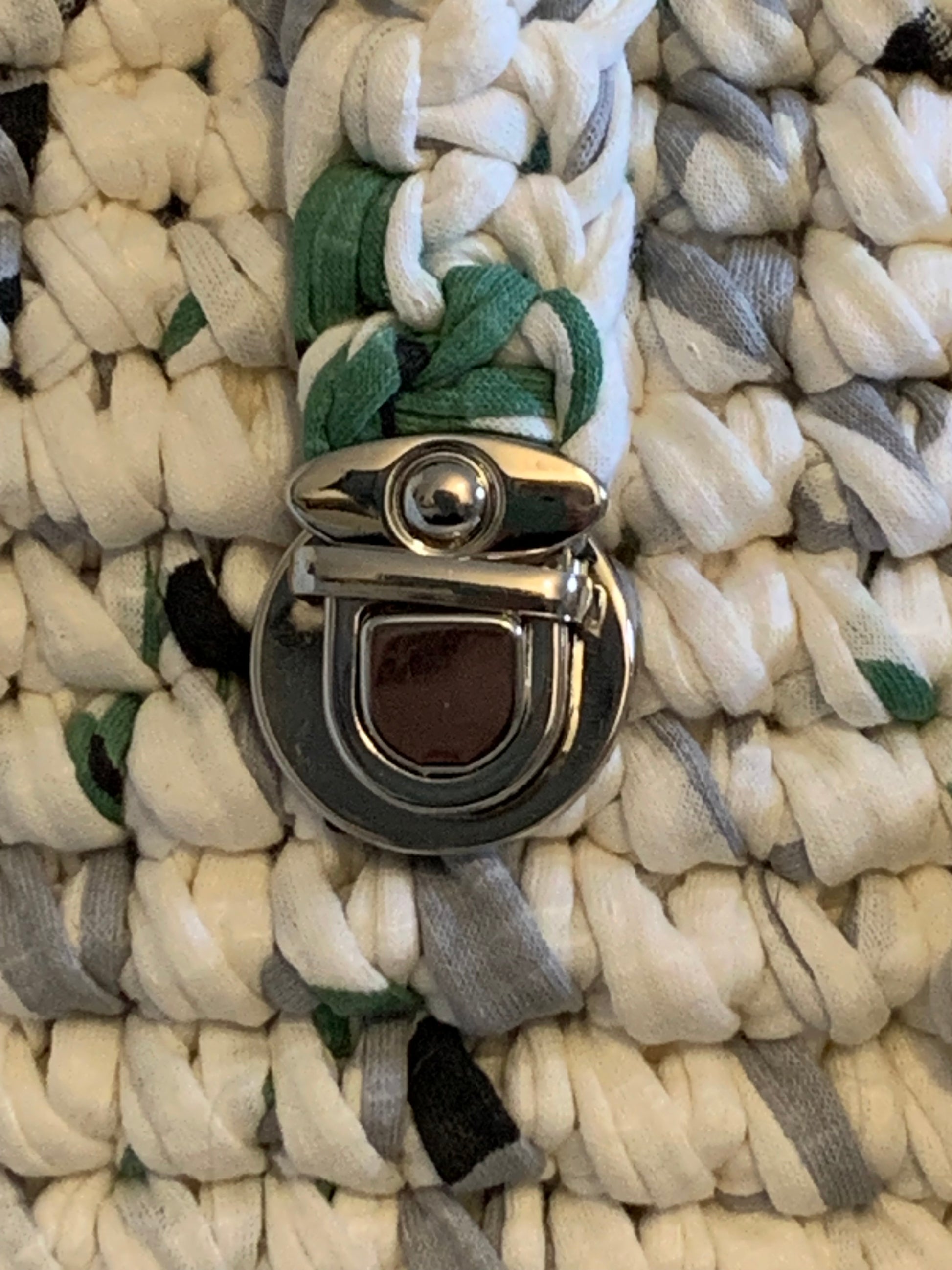 Le Clara écru, gris et vert texturé est un sac au crochet qui allie élégance et originalité. Sa matière claire, agrémentée de légères touches de couleur, lui donne un effet naturel et lumineux. En façade, un nœud argenté étincelant apporte une touche de glamour, tandis que la bandoulière noire vient moderniser l’ensemble.