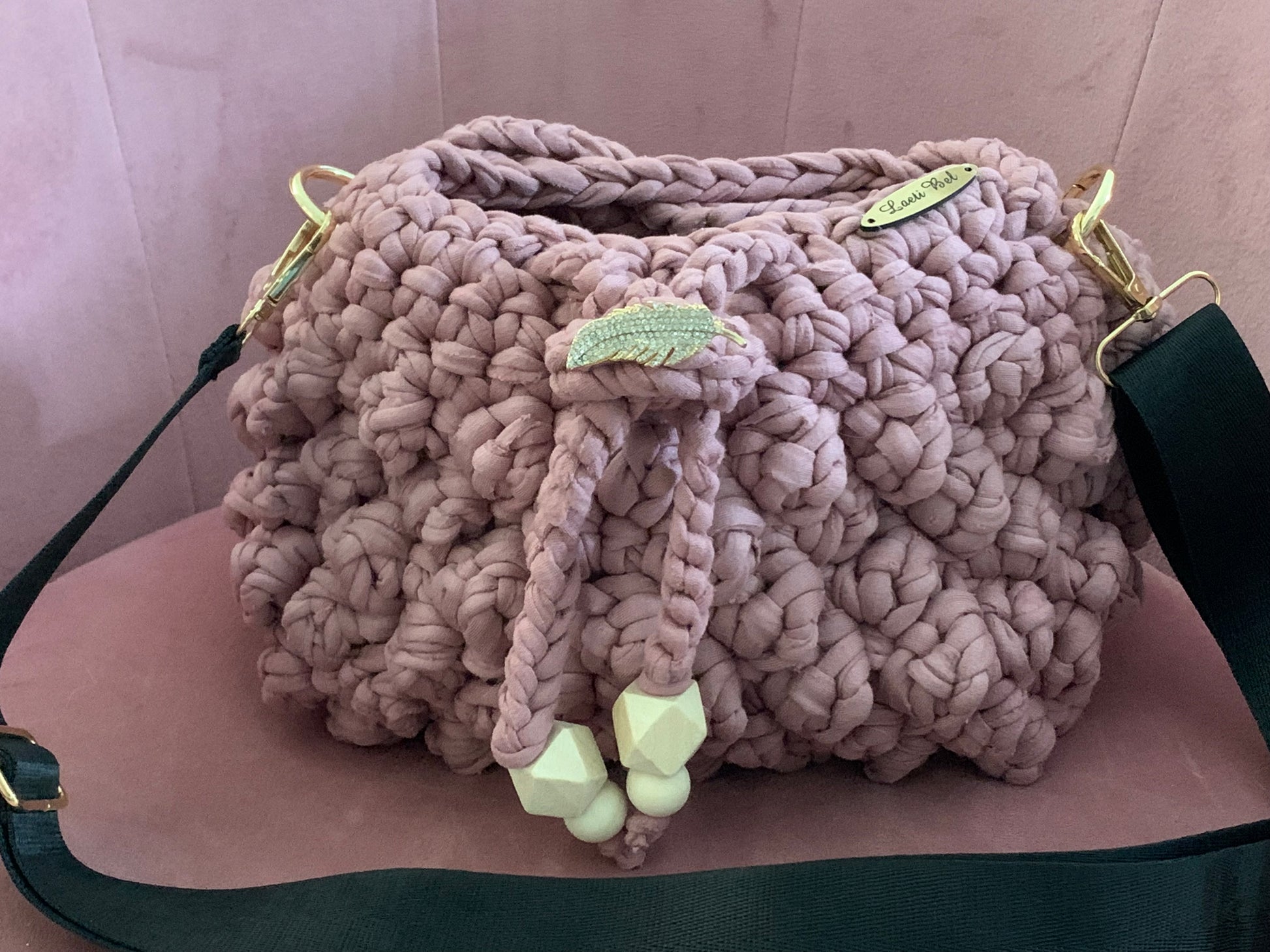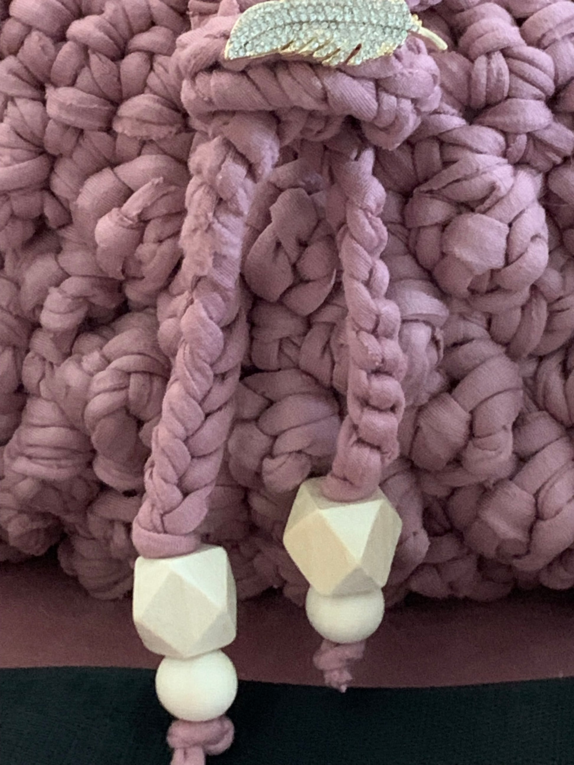 Le sac Cloé est une pièce unique crochetée à la main, pensée pour celles qui aiment allier confort, style et originalité. Sa teinte mauve poudré apporte une douceur féminine, sublimée par des détails verts pastel et des perles géométriques au bout des cordons pour une finition raffinée.