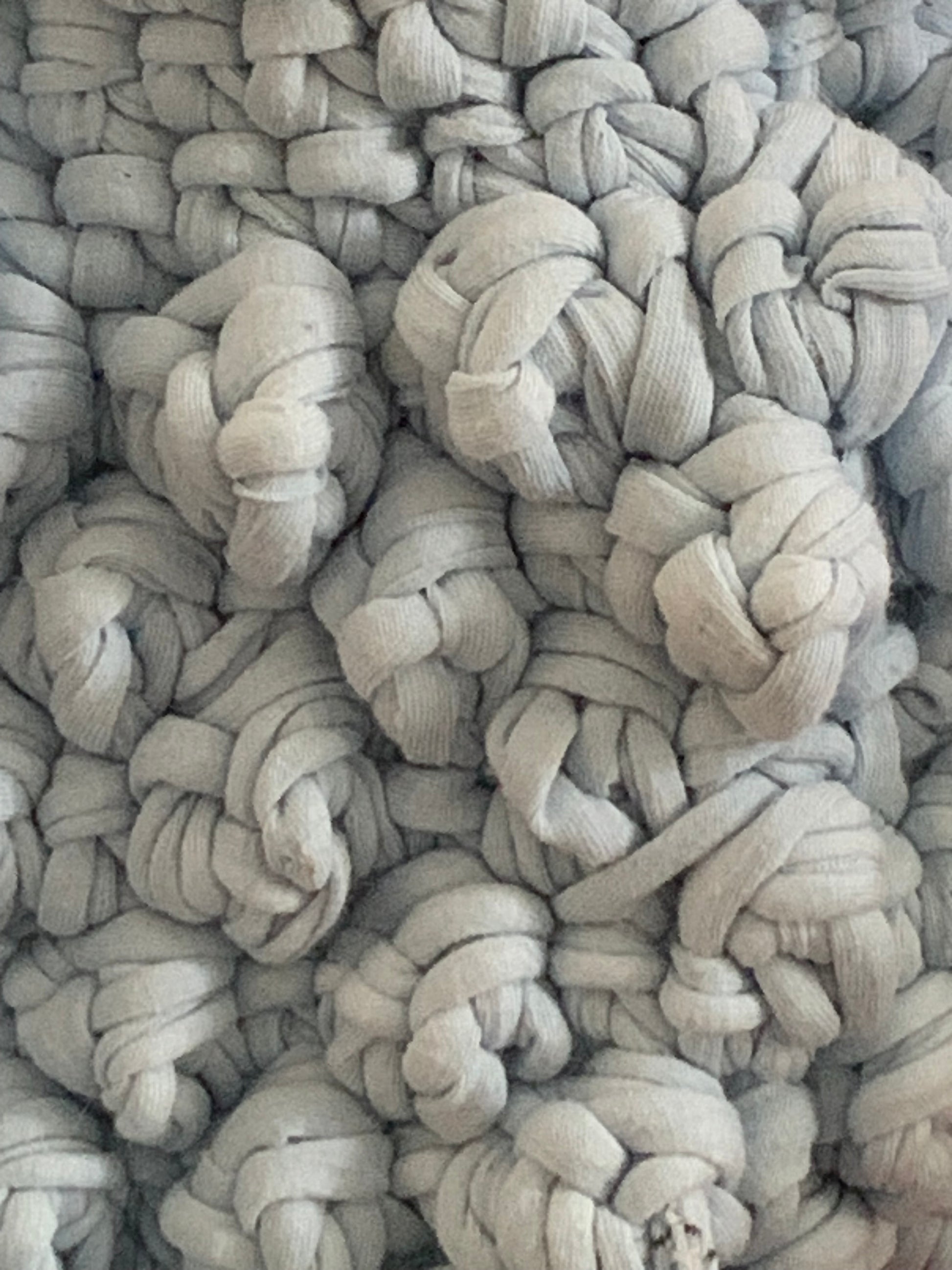 Matériaux : Tissu crocheté main, pièces métalliques argentées.