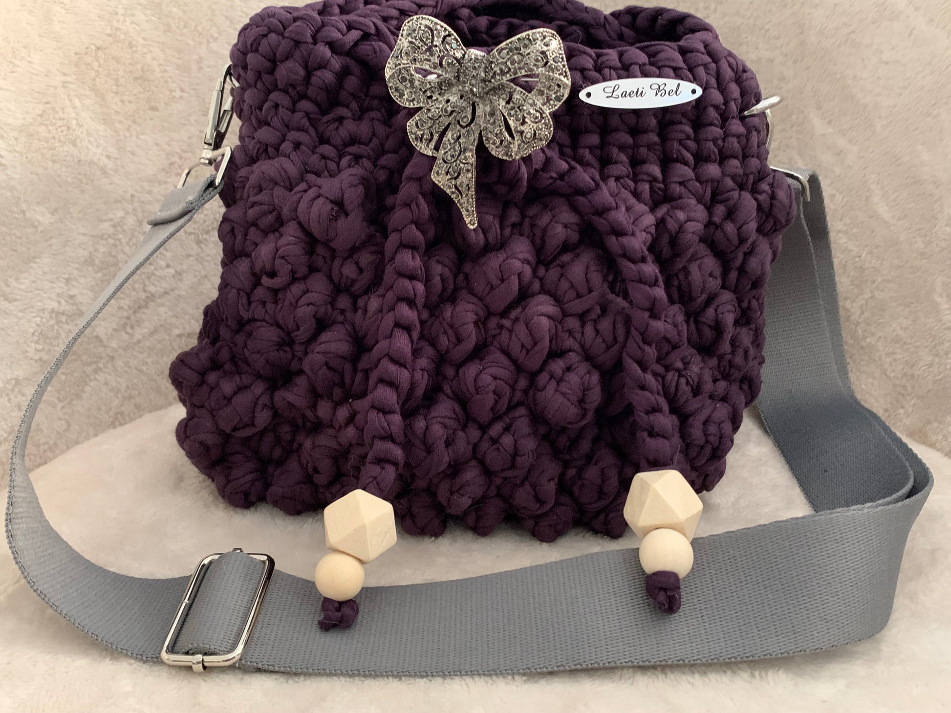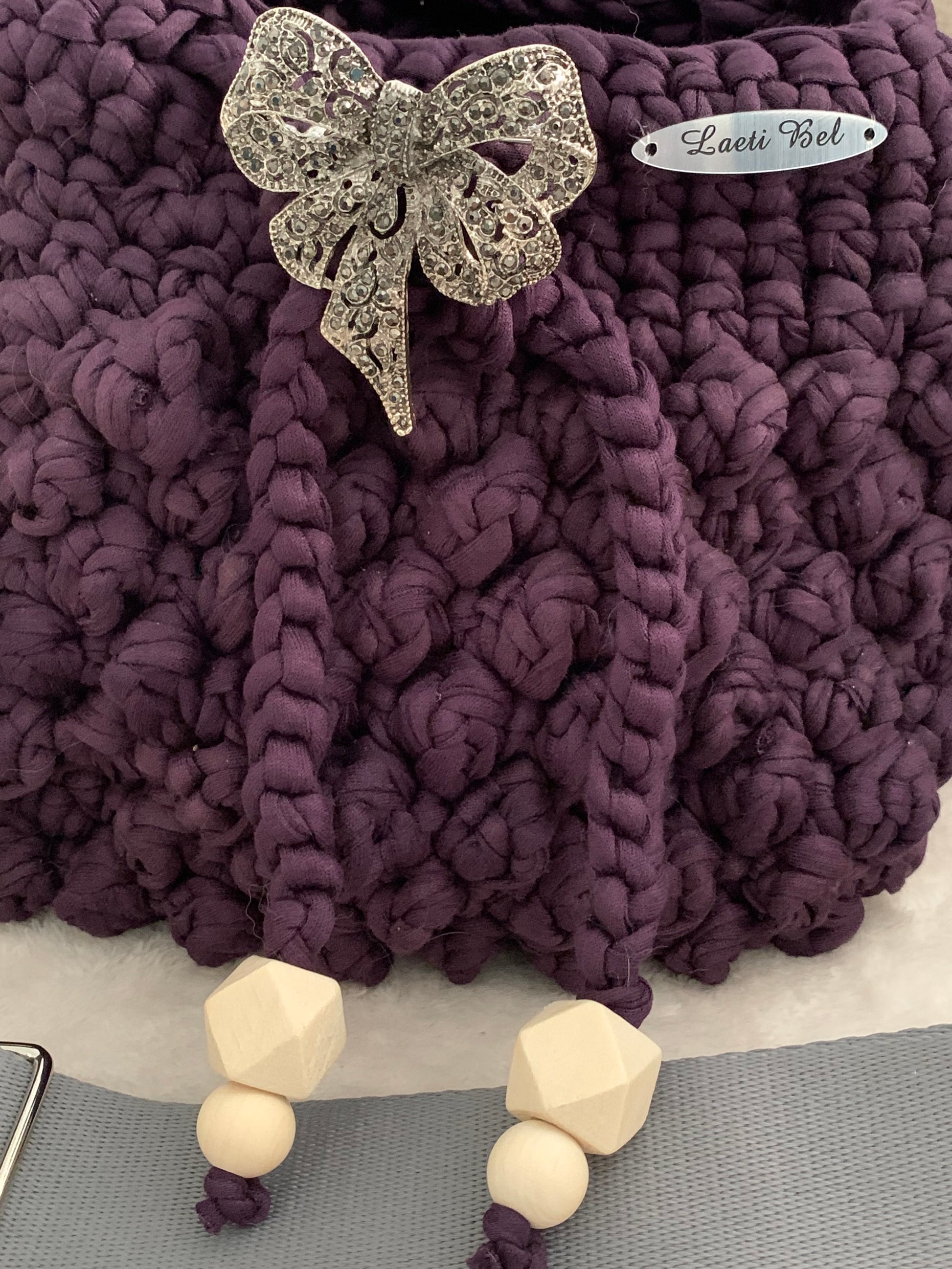 Le sac Cloé violet est une création artisanale unique, alliant charme bohème et élégance chic. Son crochet généreux met en valeur une teinte violette profonde, sublimée par un nœud bijou argenté qui apporte une touche glamour. Sa bandoulière en tissu gris réglable et ses perles en bois en font un sac confortable et original.