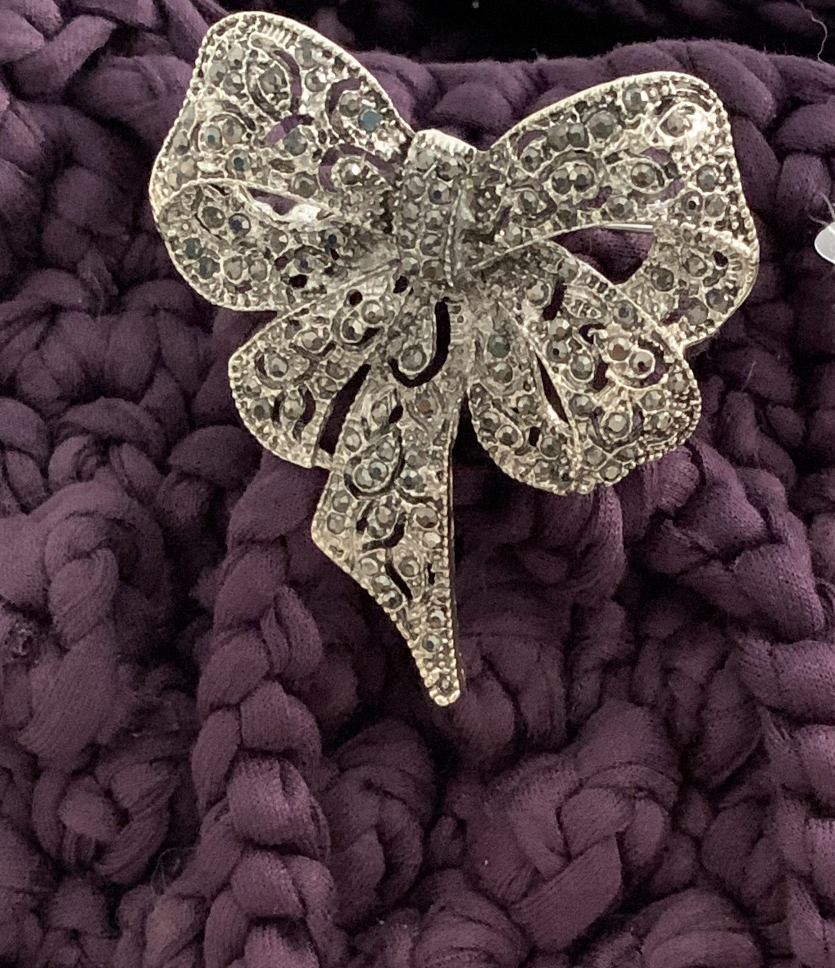 Matériaux : Crochet artisanal, bijou nœud argenté, perles bois décoratives.