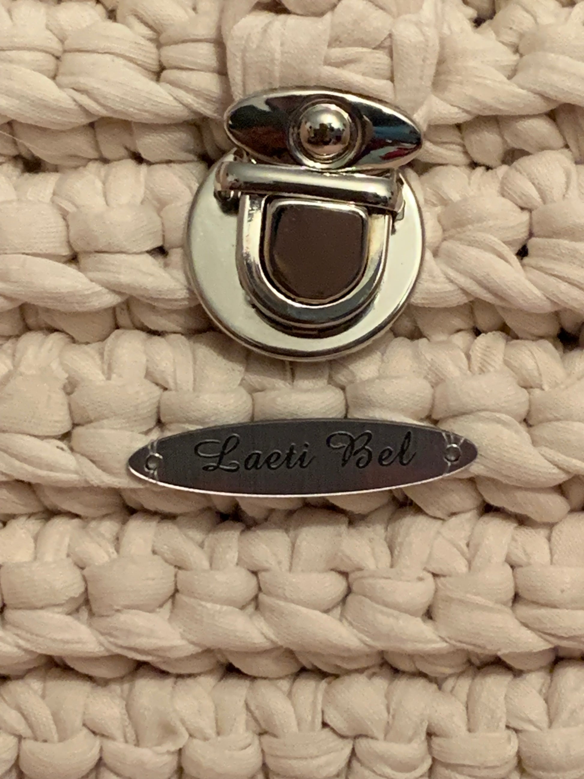 Anse : Chaîne entrelacée de fil crocheté beige.
