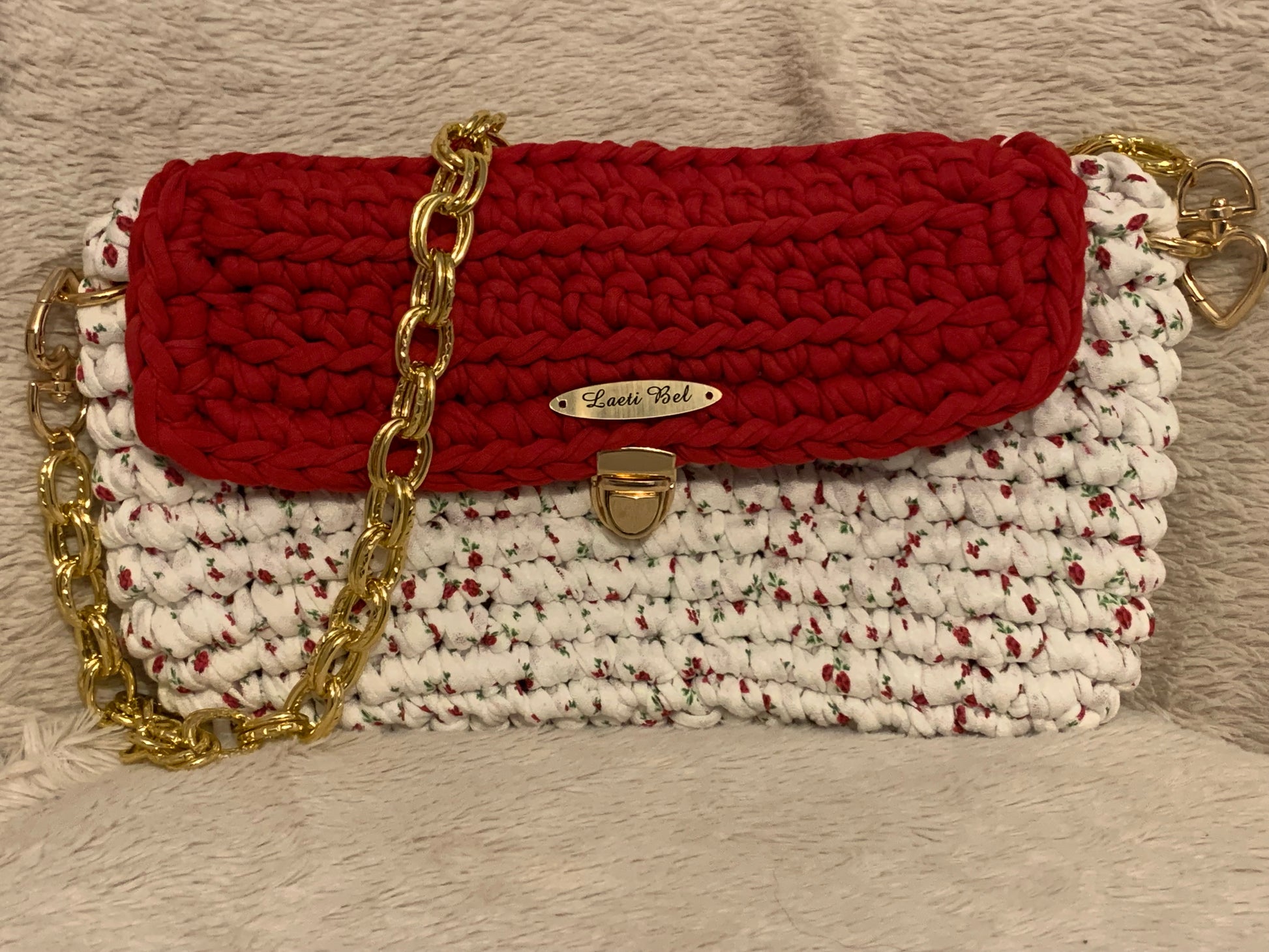 Le sac Julia séduit par son audacieux contraste entre un rabat rouge profond et une base blanche fleurie, offrant un style à la fois moderne et raffiné. Le fermoir doré et la chaîne assortie apportent une touche d’élégance supplémentaire.