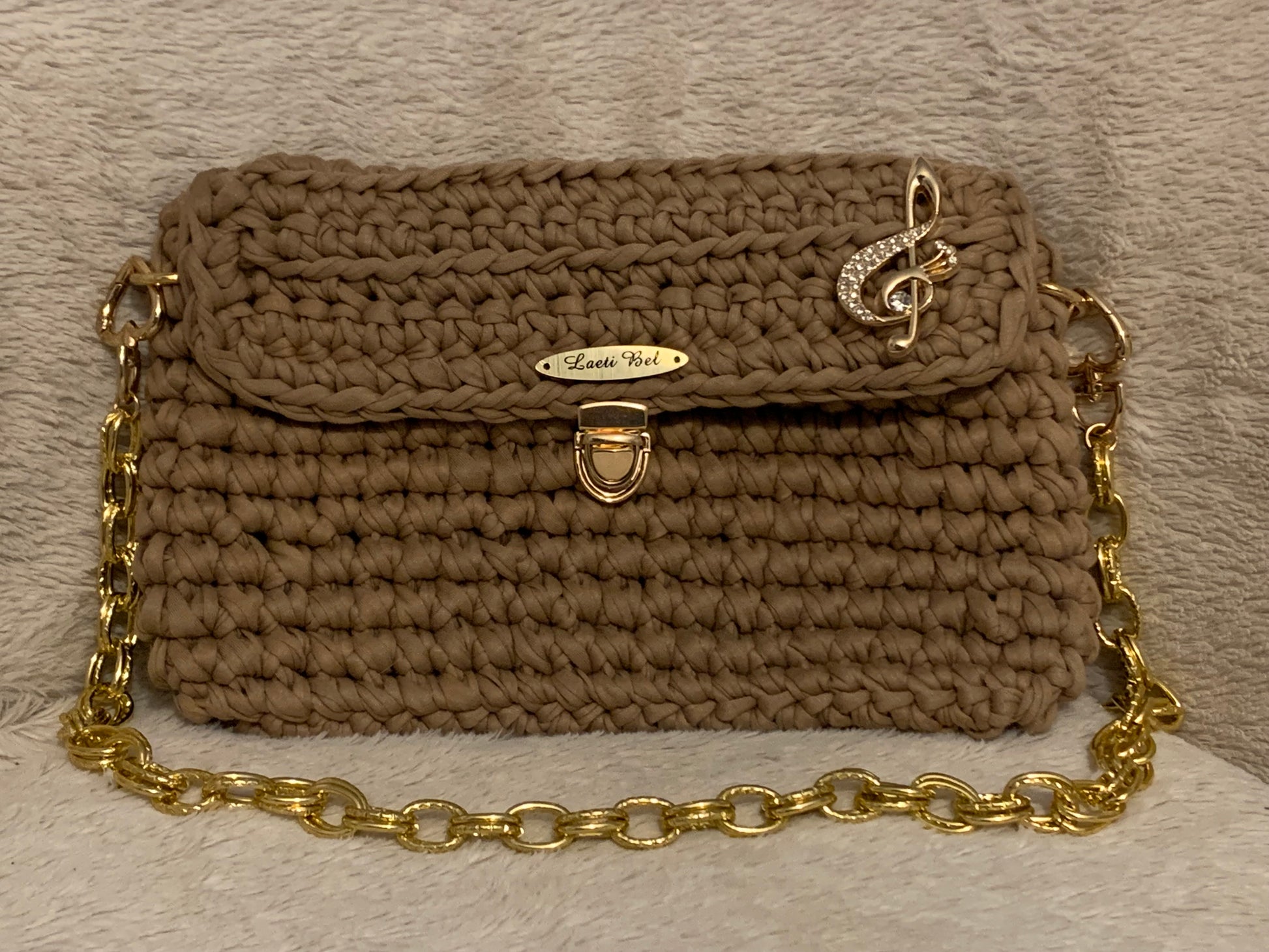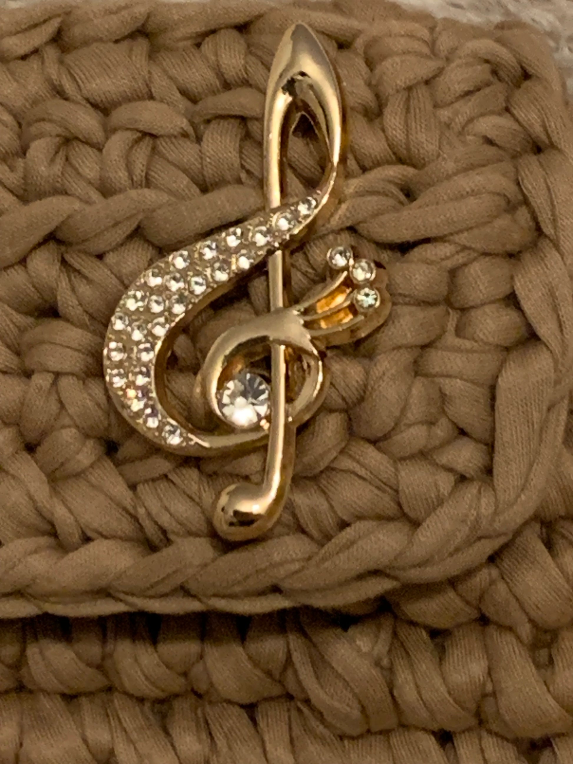 Le sac Julia en crochet marron est une pièce élégante qui allie authenticité et originalité. Sa couleur chaude et naturelle s’accorde facilement avec toutes vos tenues, tandis que la chaîne dorée et le fermoir assorti lui donnent une touche chic. Le détail unique : un bijou en forme de clé de sol sertie de strass, qui apporte raffinement et caractère.
