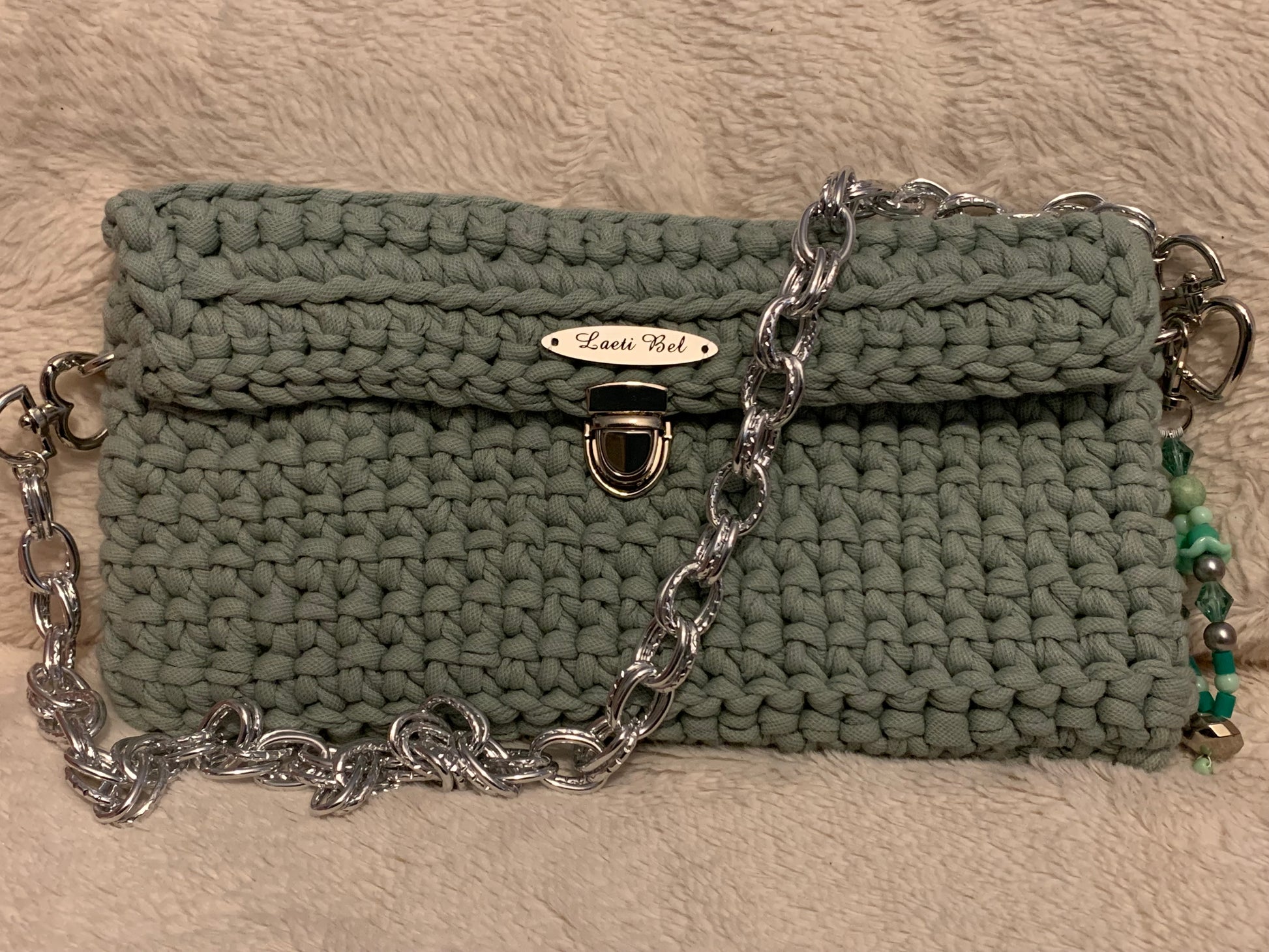 Sac à main Julia – Vert Sauge & Chaîne Argentée