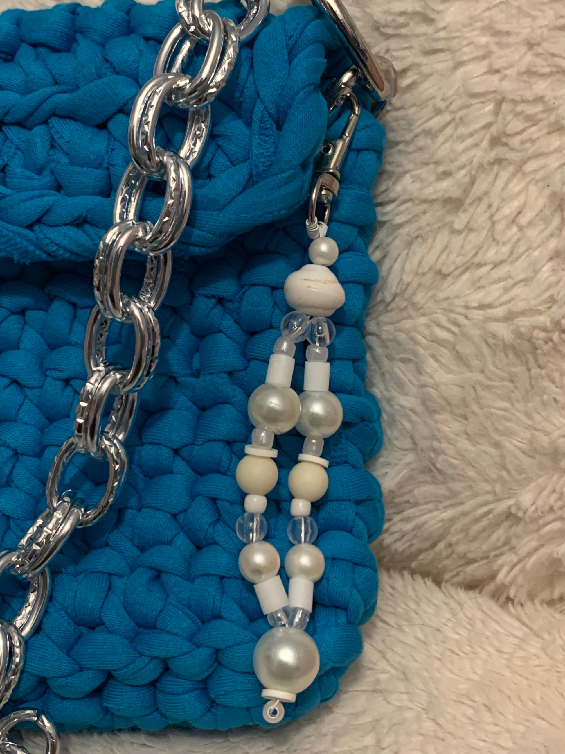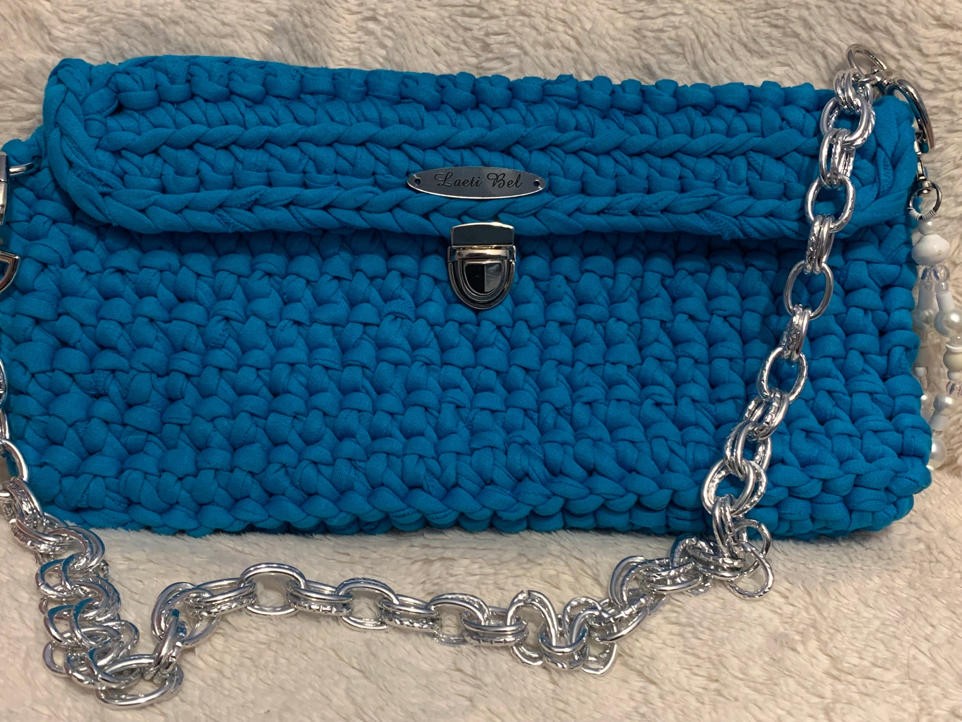 Le sac Julia en bleu azur est une création artisanale au crochet qui allie éclat et élégance. Sa couleur vive et lumineuse en fait un accessoire parfait pour rehausser vos tenues, qu’elles soient décontractées ou plus habillées. Sa chaîne argentée apporte une touche moderne et tendance, tandis que son fermoir argent raffiné garantit sécurité et style.