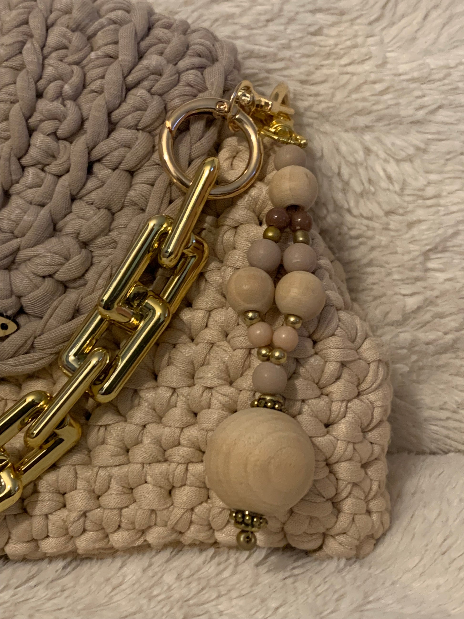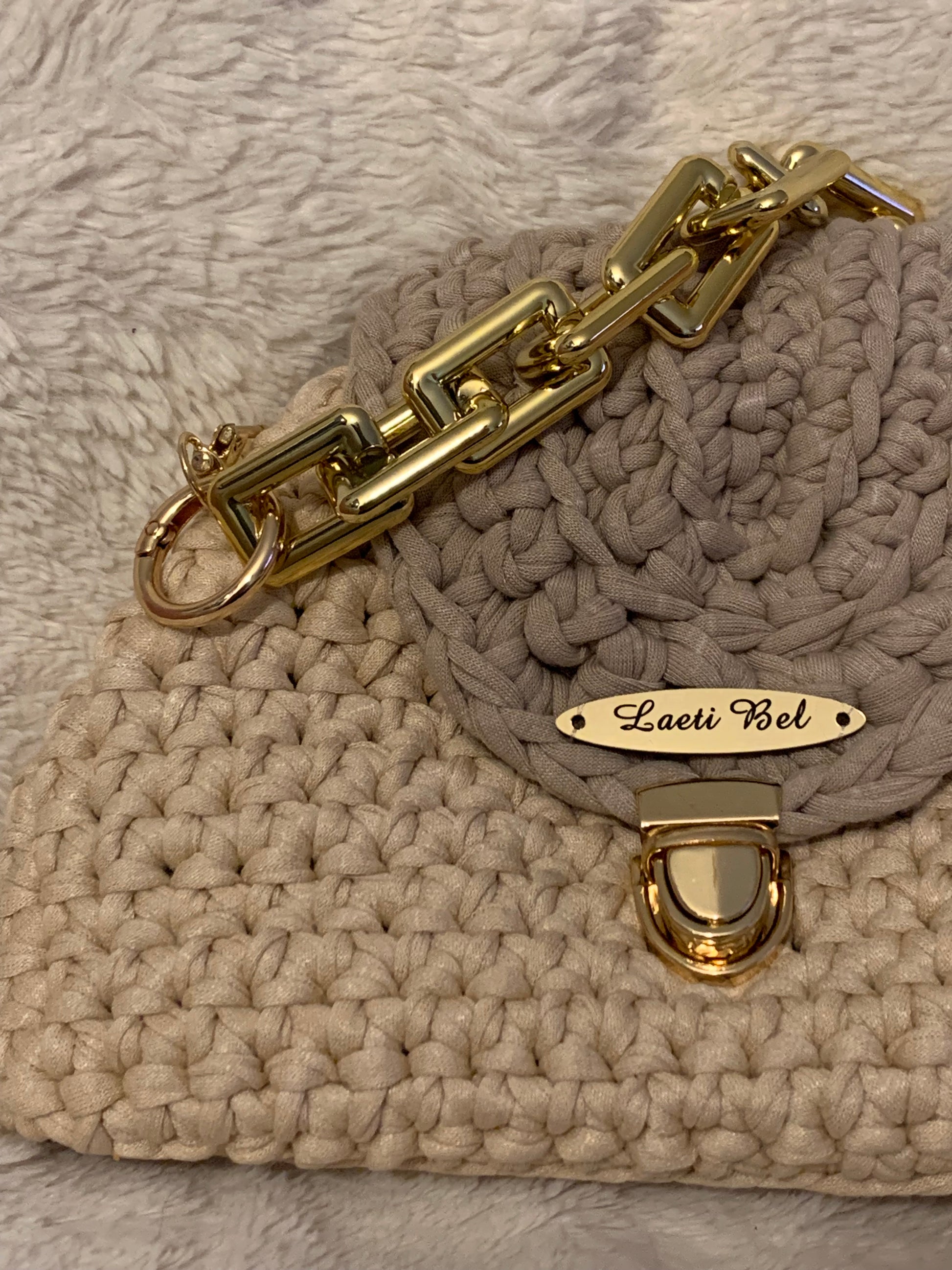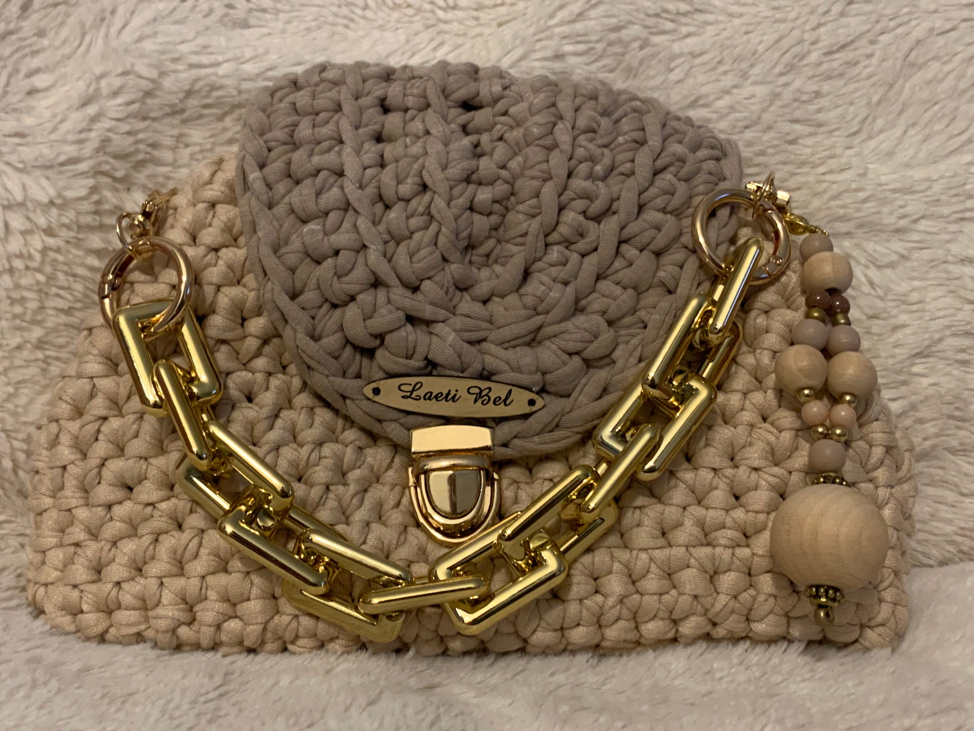 Le sac Léa en crochet bicolore beige et taupe est une pièce élégante qui associe douceur et modernité. Ses tons naturels s’accordent avec toutes vos tenues, des plus décontractées aux plus sophistiquées. Son rabat taupe contrasté et sa base beige lui confèrent une allure raffinée et équilibrée. La chaîne dorée épaisse, accompagnée d’un charm en perles et bois, apporte une touche chic et originale.