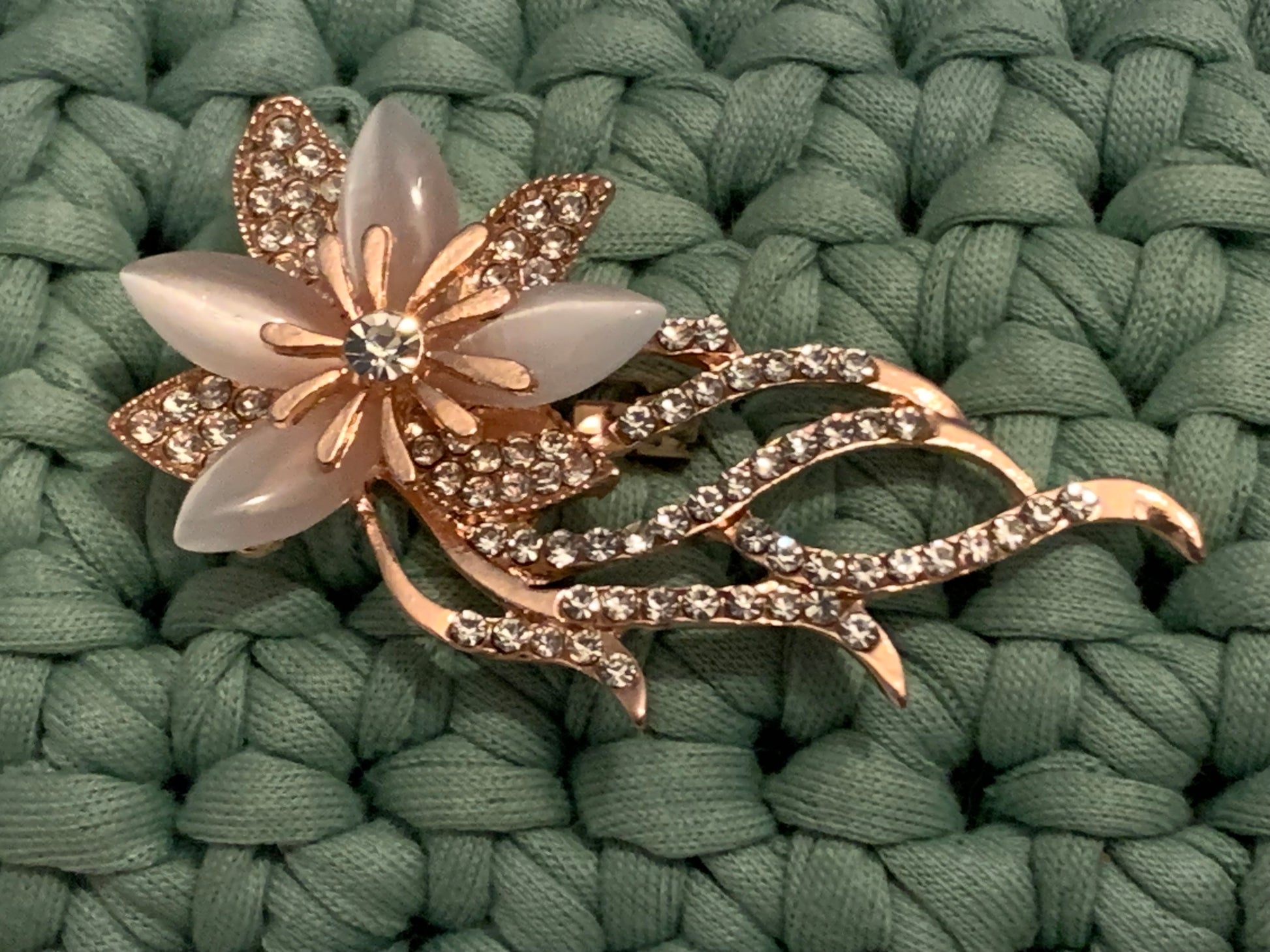 Bijou décoratif : Fleur dorée avec strass scintillants.