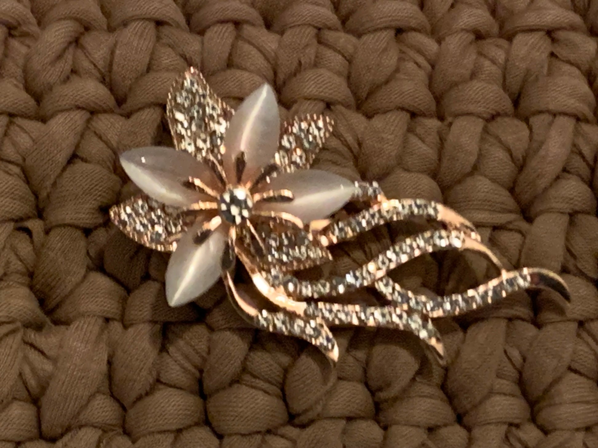 Bijou décoratif : Fleur dorée avec strass étincelants.