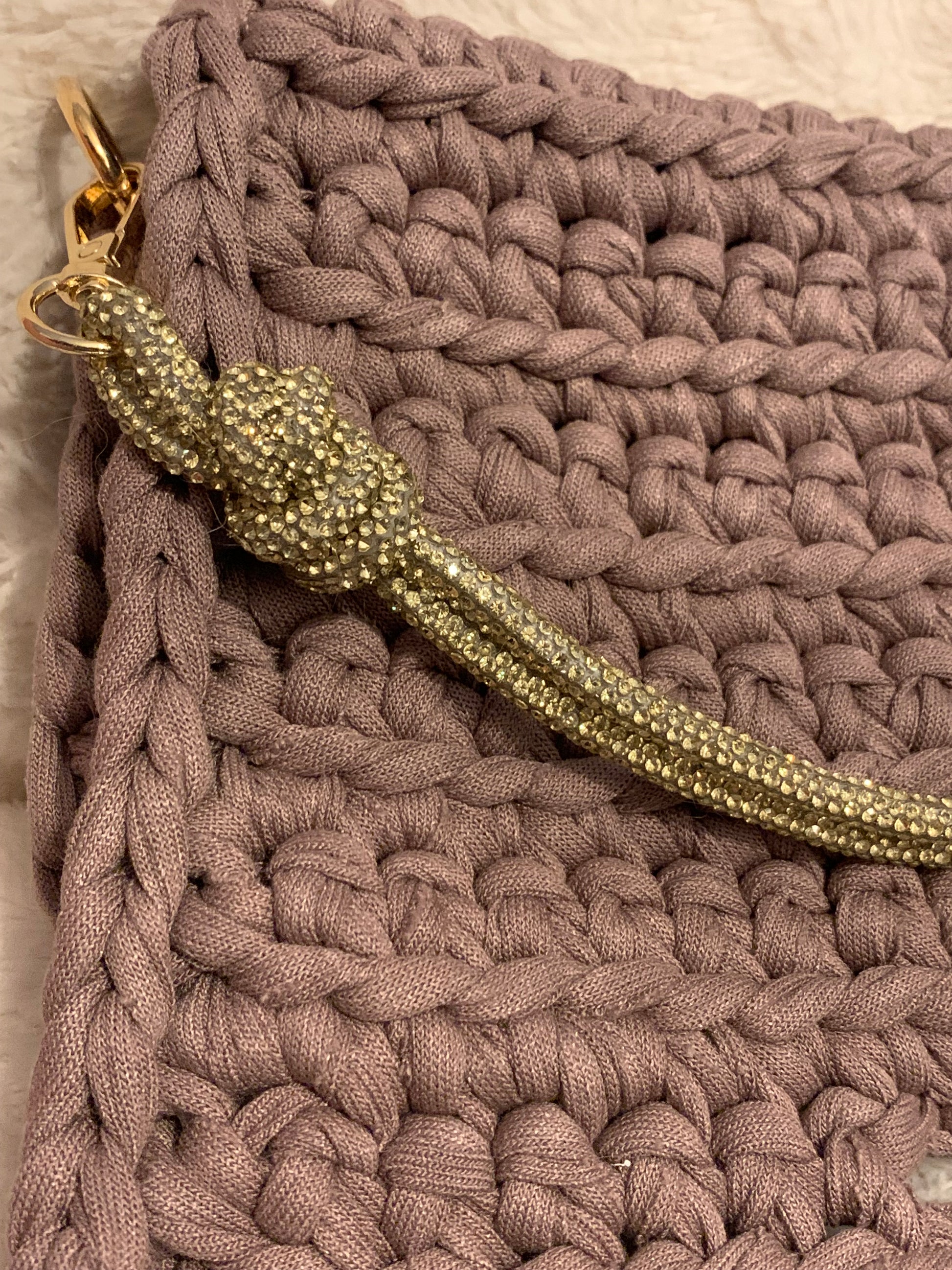 Le sac Lily incarne l’élégance naturelle avec sa teinte marron chocolat riche et chaleureuse. Fait main au crochet, il se distingue par sa texture artisanale raffinée et son design moderne. La bandoulière en chaîne dorée scintillante et le motif doré sur le rabat lui confèrent une allure sophistiquée, idéale pour sublimer une tenue de jour comme de soirée.