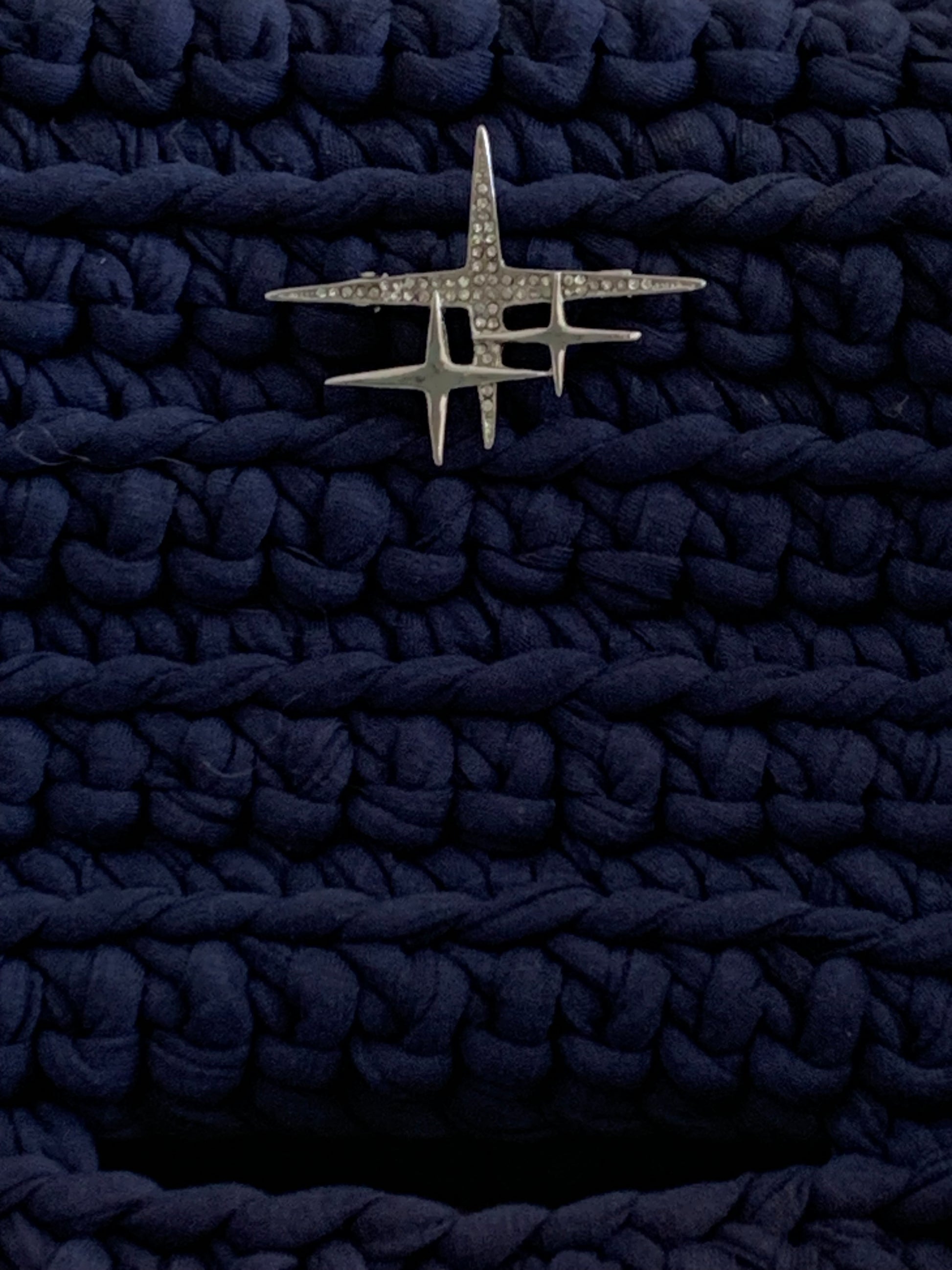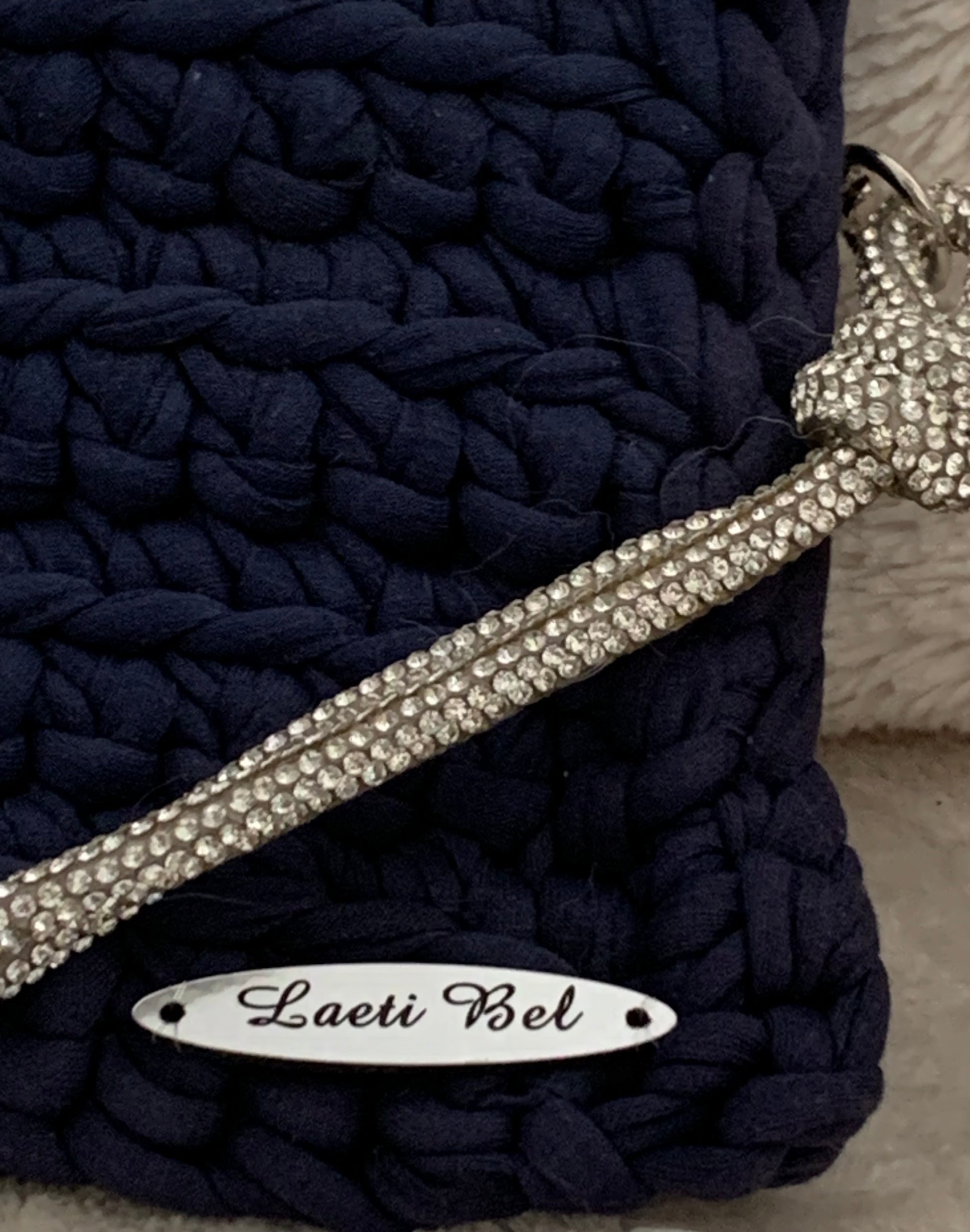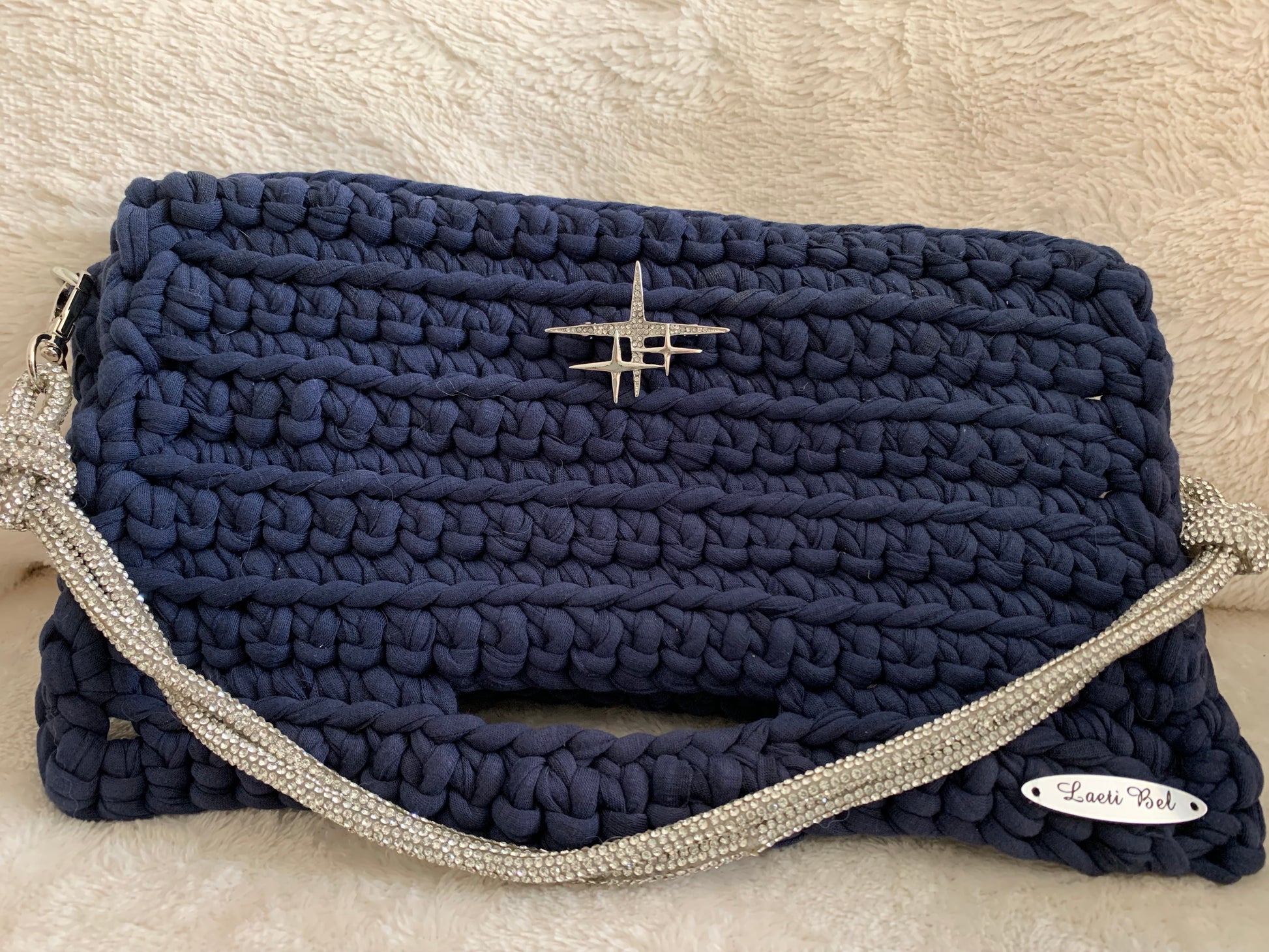 Le sac Lily incarne l’élégance naturelle avec sa teinte marine riche et chaleureuse. Fait main au crochet, il se distingue par sa texture artisanale raffinée et son design moderne. La bandoulière argentée scintillante et le motif argenté sur le rabat lui confèrent une allure sophistiquée, idéale pour sublimer une tenue de soirée.