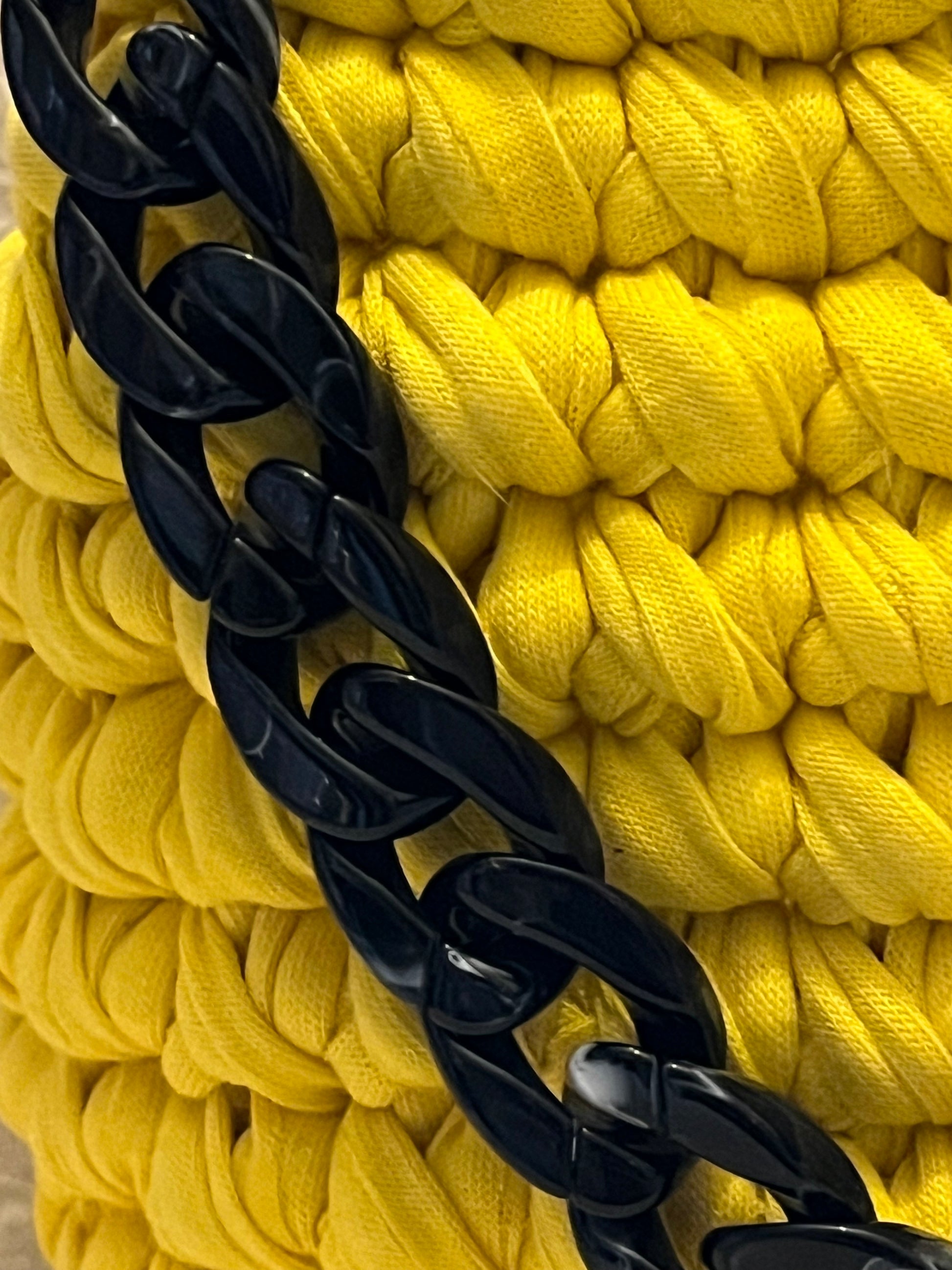Design : Jaune solaire rehaussé d’une chaîne noire contrastante.