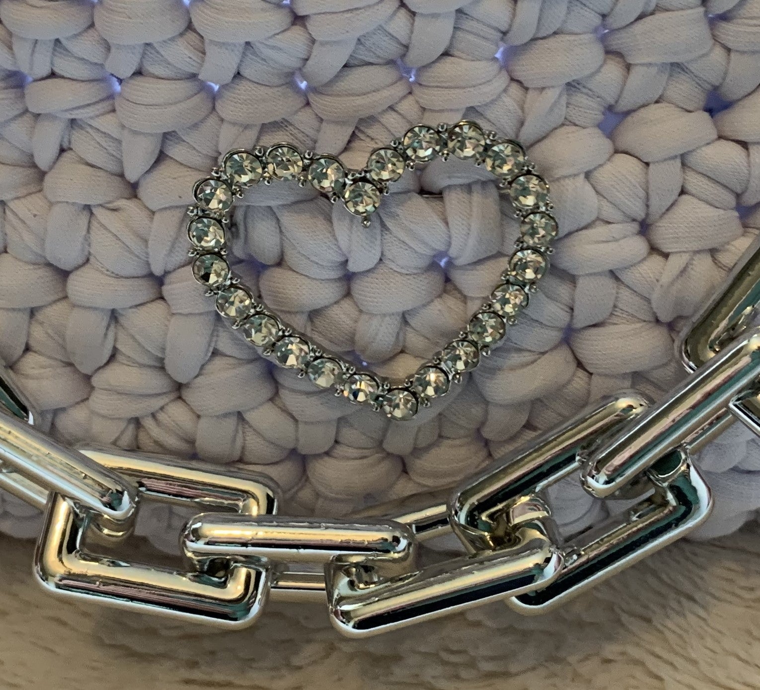Élégant et raffiné, le sac Lisa séduit par sa teinte blanc perle intemporelle, sublimée par une chaîne argentée aux maillons modernes. Son détail cœur incrusté de strass apporte une touche romantique et scintillante, idéale pour compléter vos tenues avec charme et délicatesse.