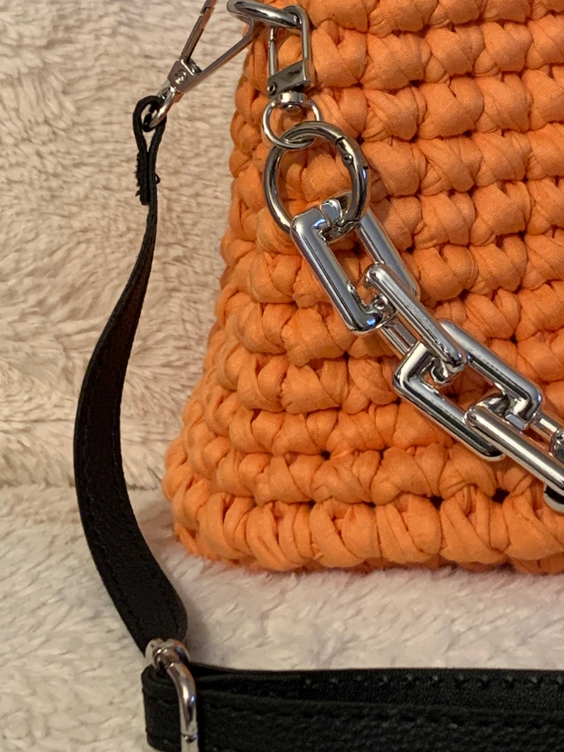 Le sac Lisa en crochet orange vif est l’accessoire parfait pour ajouter une touche de pep’s à vos tenues. Sa couleur chaleureuse et lumineuse en fait un modèle audacieux et tendance. Conçu avec une solide chaîne argentée au style affirmé et une bandoulière noire réglable, il associe parfaitement modernité et confort. Pratique et original, il s’adapte aussi bien à vos sorties décontractées qu’à vos looks plus affirmés.