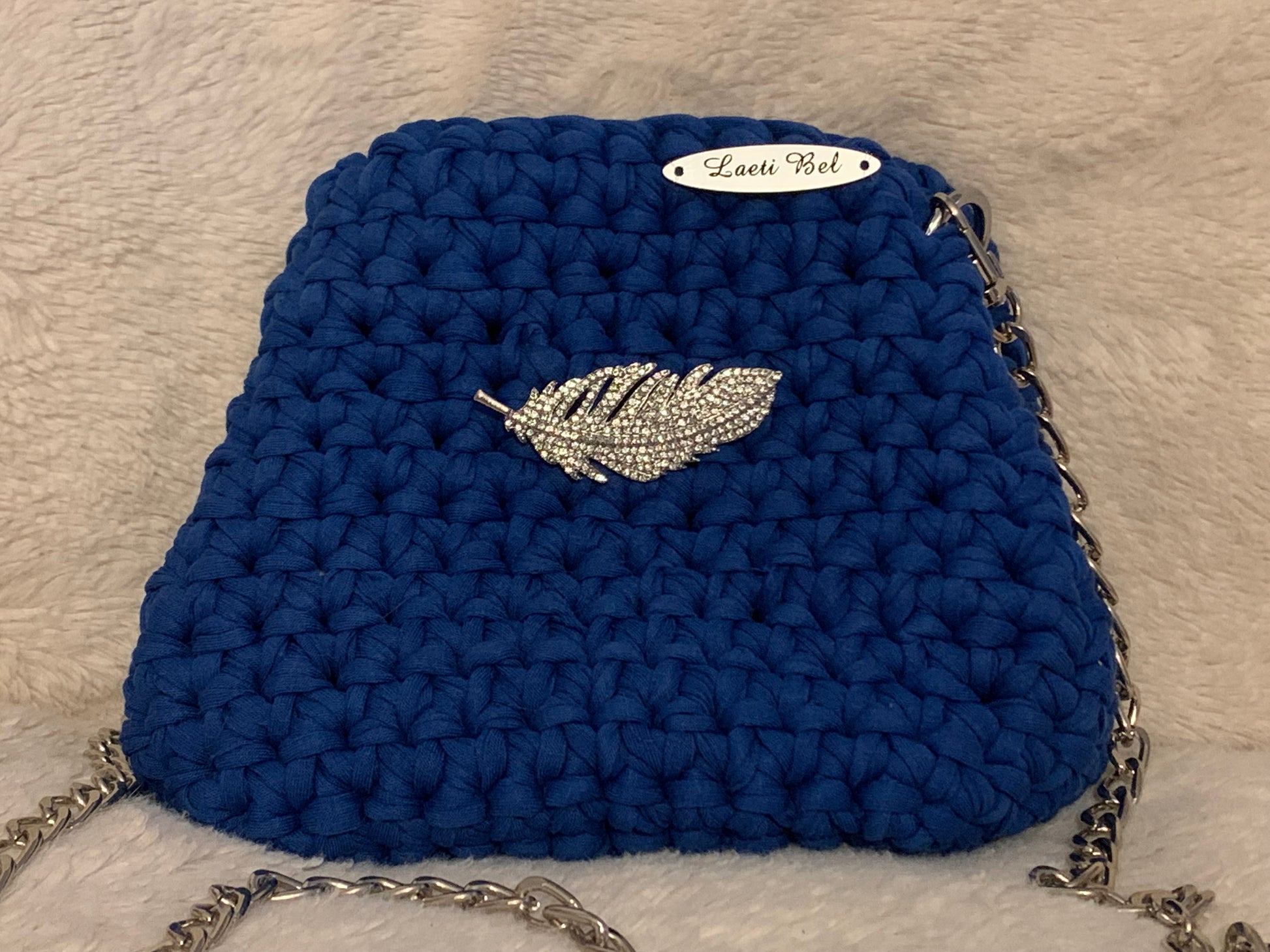 Le sac Lisa en crochet bleu profond incarne l’élégance intemporelle avec une touche poétique. Son coloris intense s’associe à une chaîne argentée discrète et à une magnifique broche en forme de plume ornée de strass, pour une allure raffinée et unique. À la fois pratique et chic, il accompagne aussi bien vos journées actives que vos soirées élégantes.