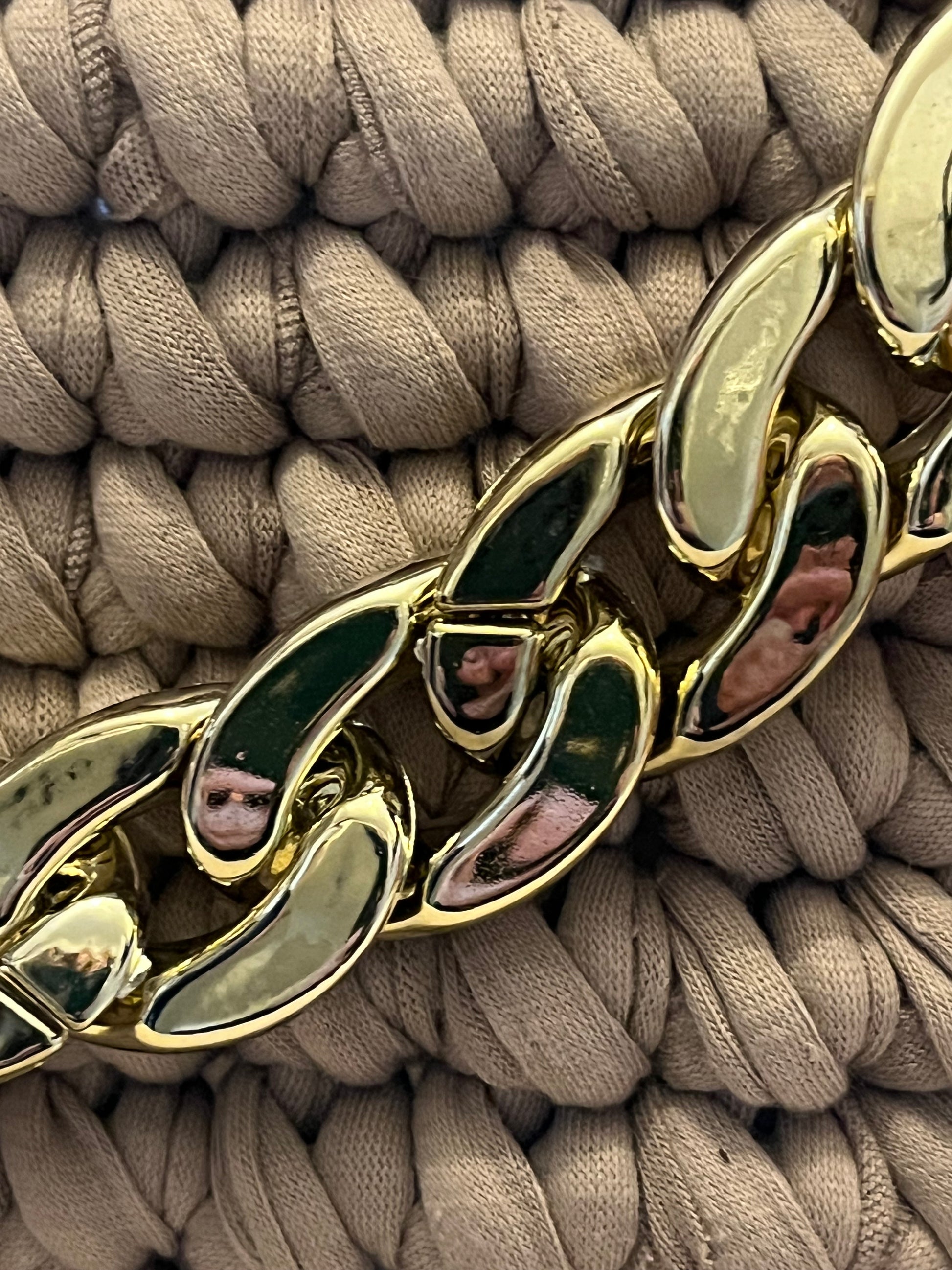 Sac à main Lisa – Élégance taupe et chaîne dorée effet miroir