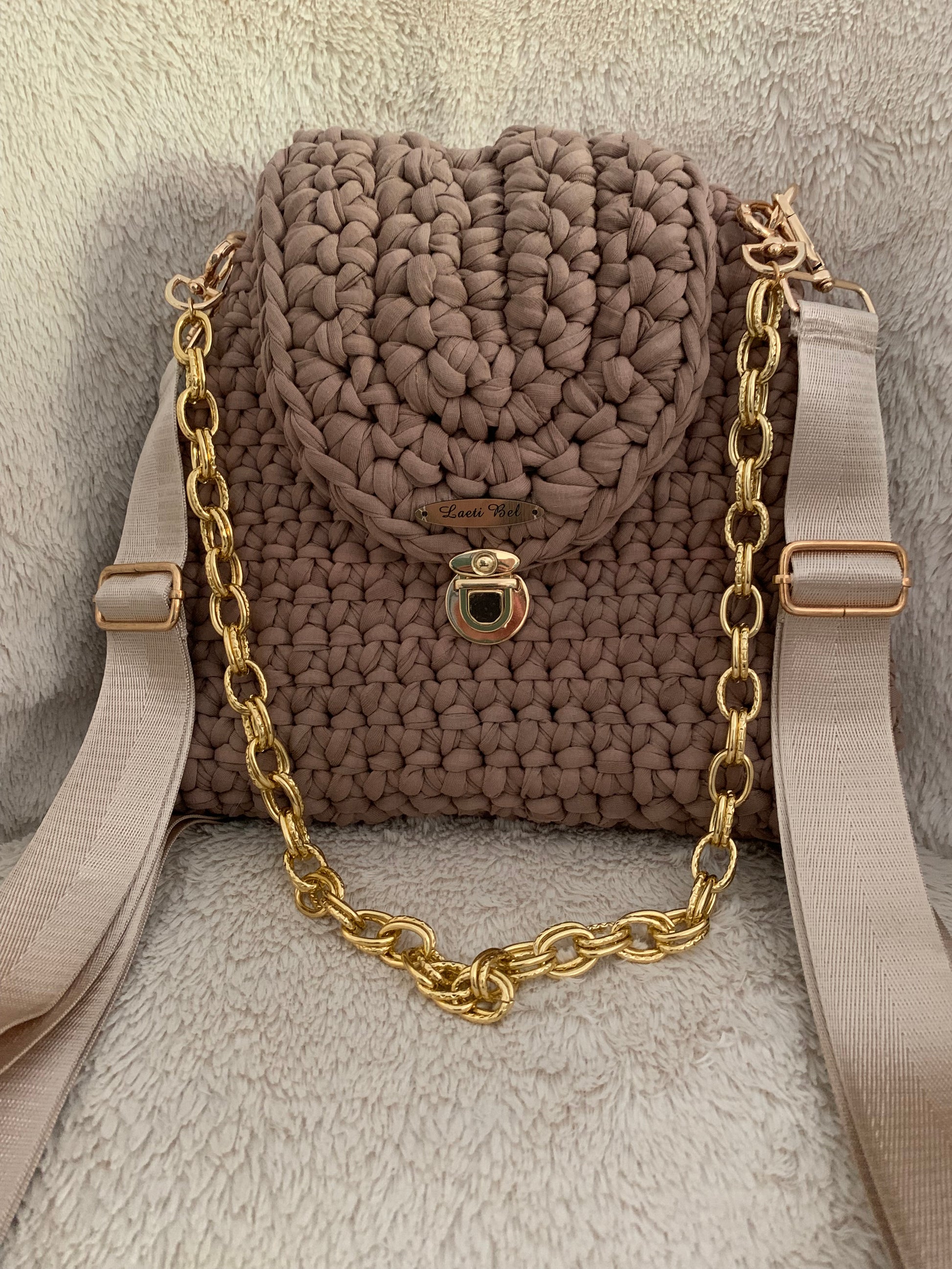 Le sac Nina combine élégance naturelle et modernité. Confectionné en crochet beige taupe, il est sublimé par une chaîne dorée brillante et des bretelles beiges réglables qui assurent confort et raffinement. Son style polyvalent en fait un indispensable pour accompagner vos looks, du quotidien aux sorties plus habillées.