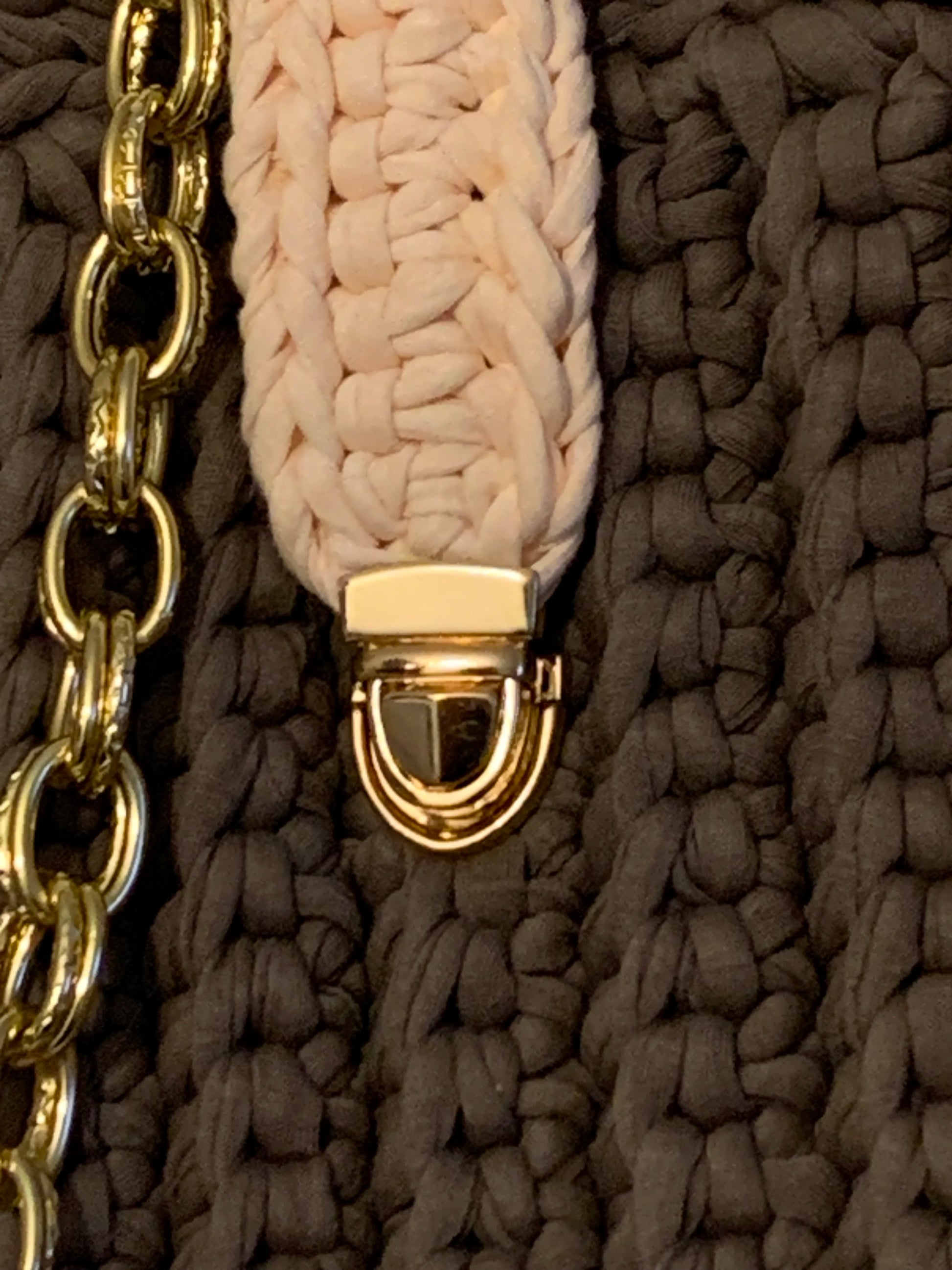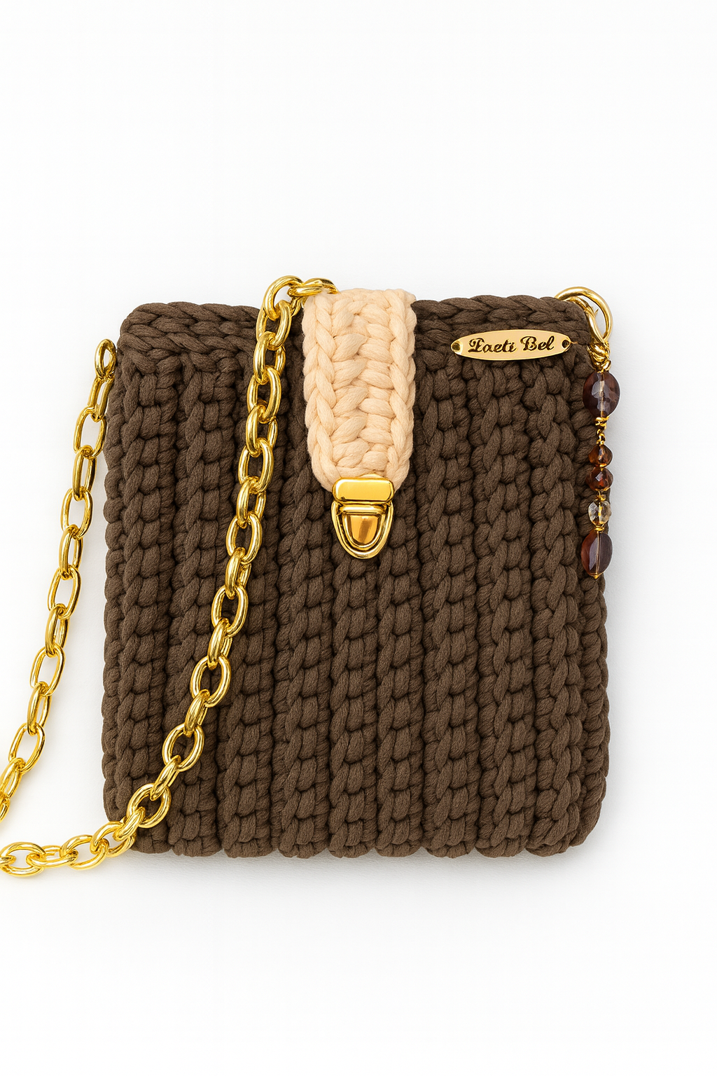 Le sac Olga incarne l’élégance artisanale avec son crochet chocolat profond rehaussé d’éléments dorés raffinés. Sa bandoulière dorée associée à une attache rose poudré et un charm perlé donne un style unique, chic et distingué. Parfait pour accompagner vos tenues avec une touche sophistiquée et moderne.