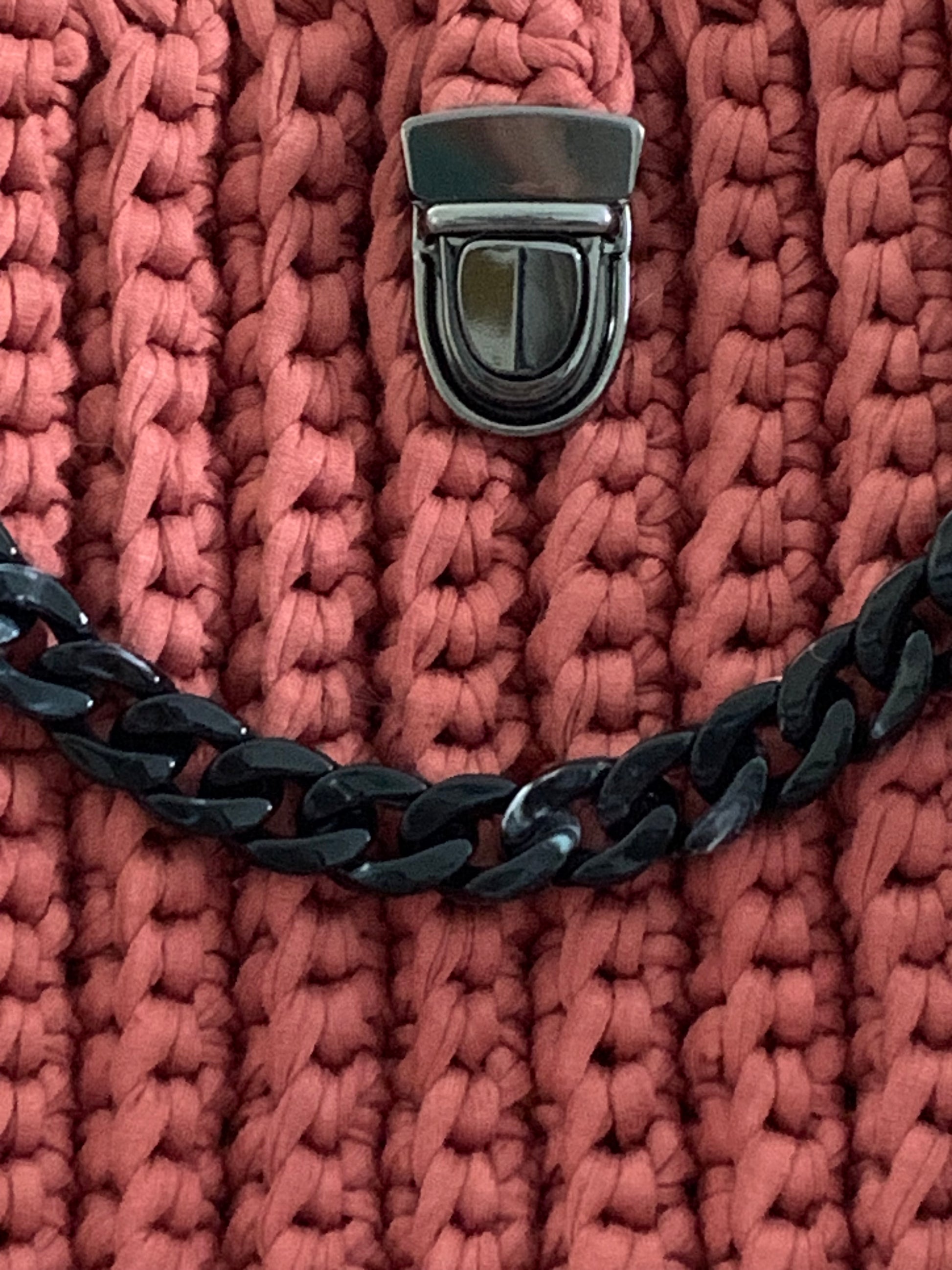 Matériaux : Tissu crocheté main, fermoir métallique noir.